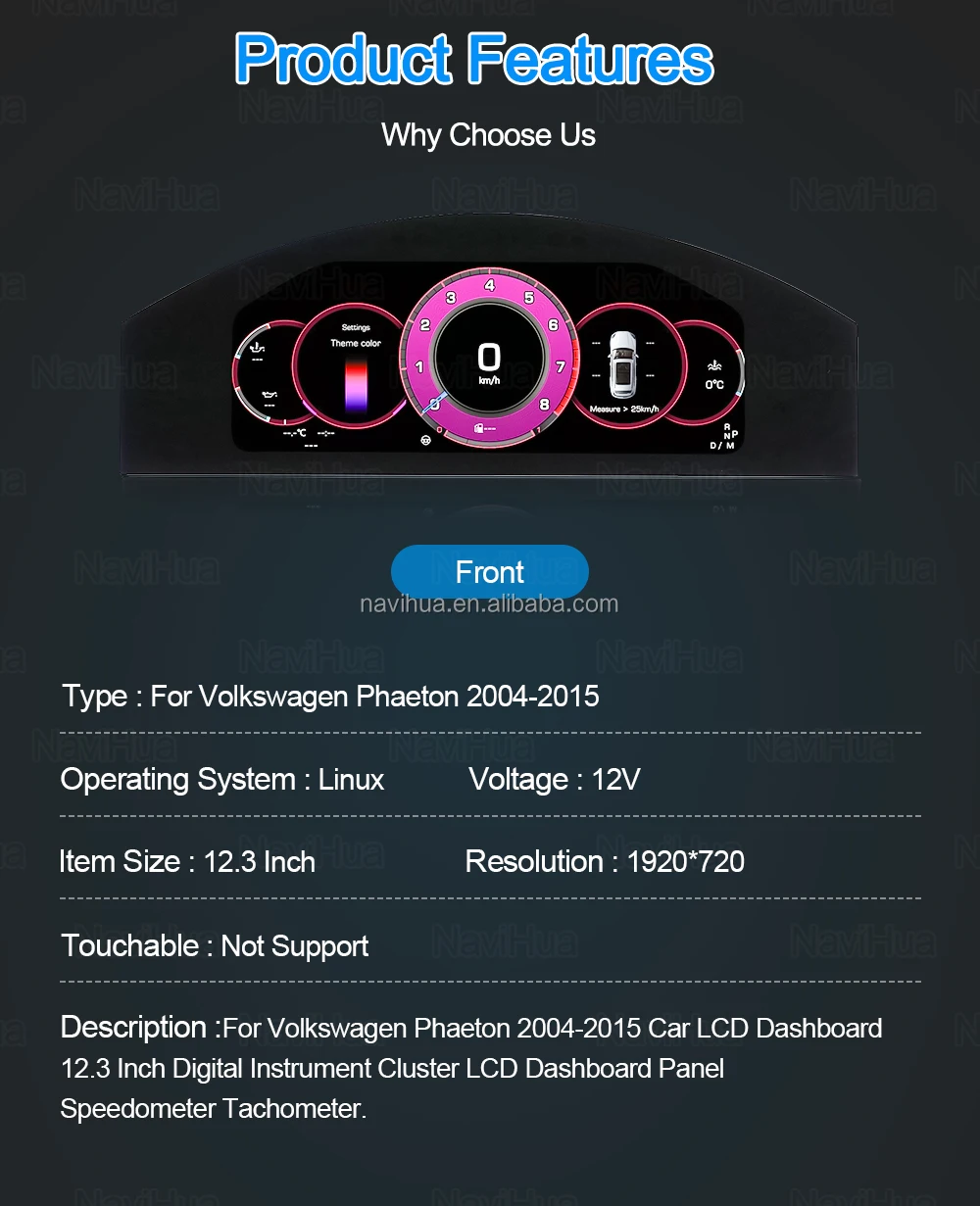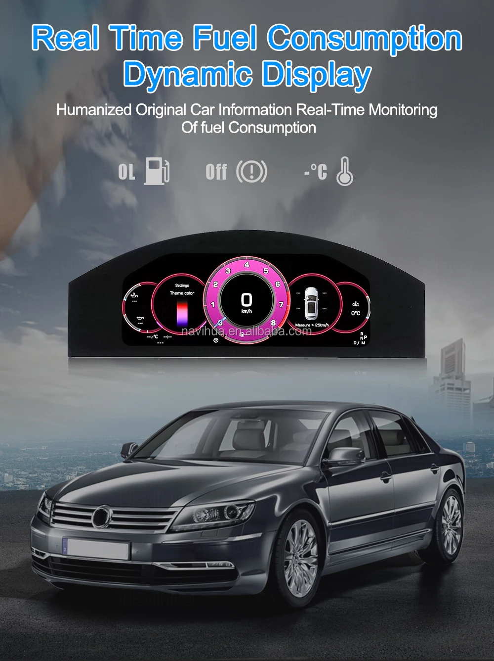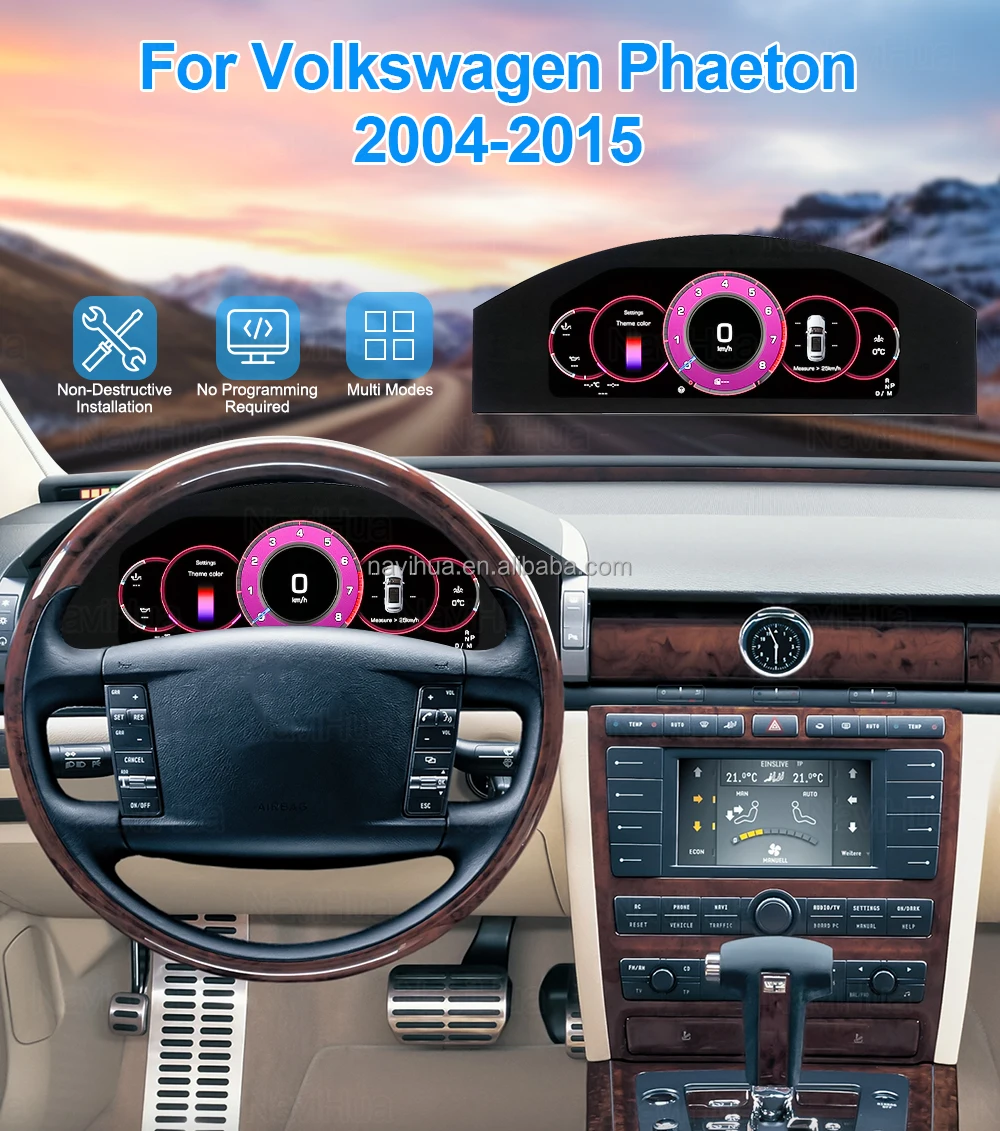 Navihua Digital Cluster Linux System LCD Dashboard Instrument Speedometer for Volkswagen VW Phaeton 2004-2015 Virtual Cockpit
