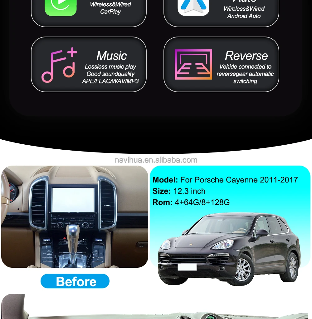 Navihua New Arrival Dual Screen Android Car Radio Multimedia Player RHD LHD Auto Carplay Monitor For Porsche Cayenne 2011-2017