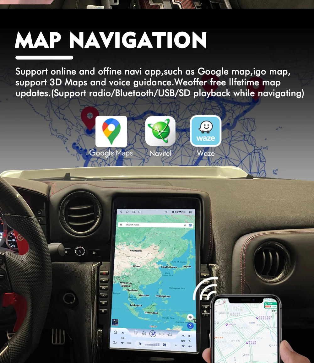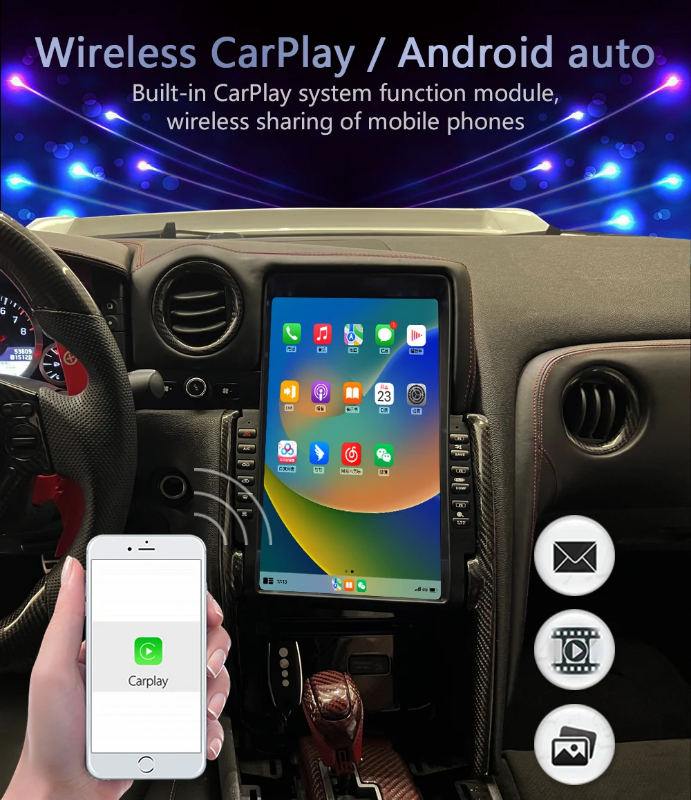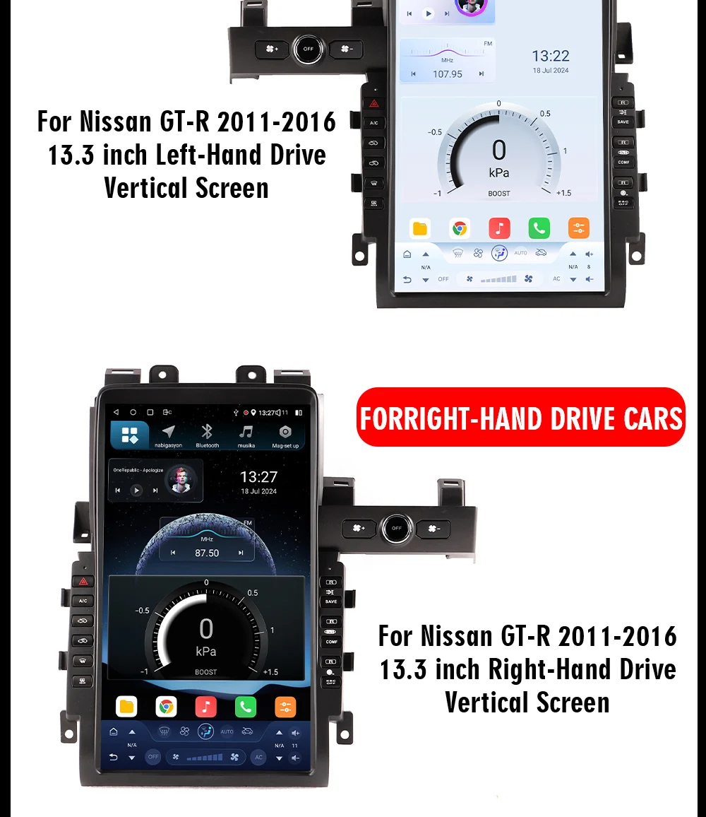 13.3″ for Tesla Vertical Style Screen Android Car Radio Stereo GPS Navigation Multimedia Player For Nissan GTR 2011-2016 Carplay