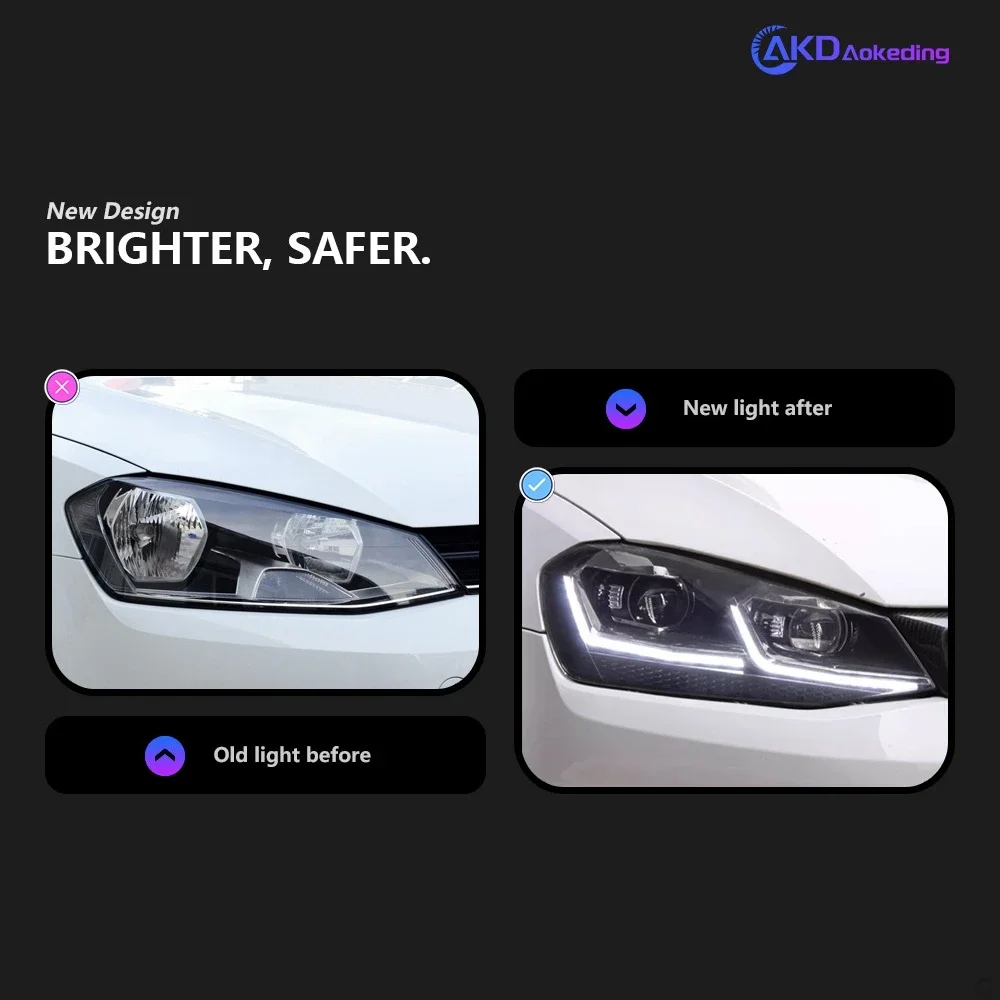 2 PCS For Golf 7 2013-2017 MK7 Upgrade 7.5 Design LED Auto Headlights Assembly DRL Bifocal Lens Lamp Accessories