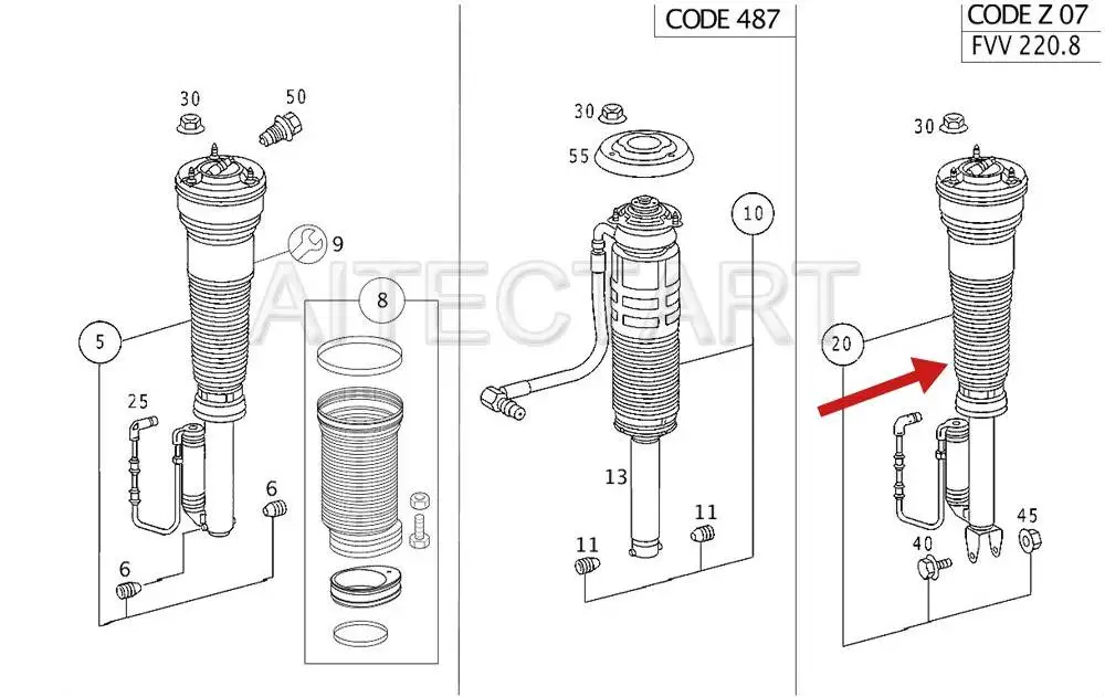 For Mercedes-Benz W220 C217 LWB (S320/S430/S500) 2001-2005