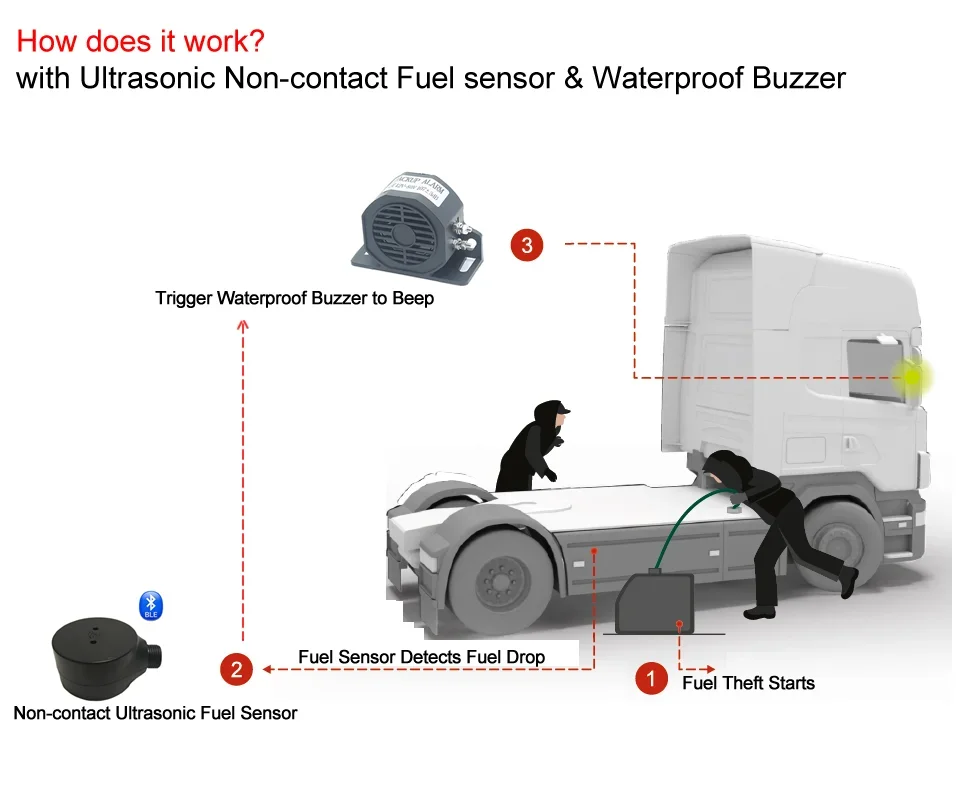 Anti Fuel Theft Alarm Non-Contact Fuel Steal Detector for Truck Car Motor Ultrasonic Oil Level Sensor Fuel Monitoring System