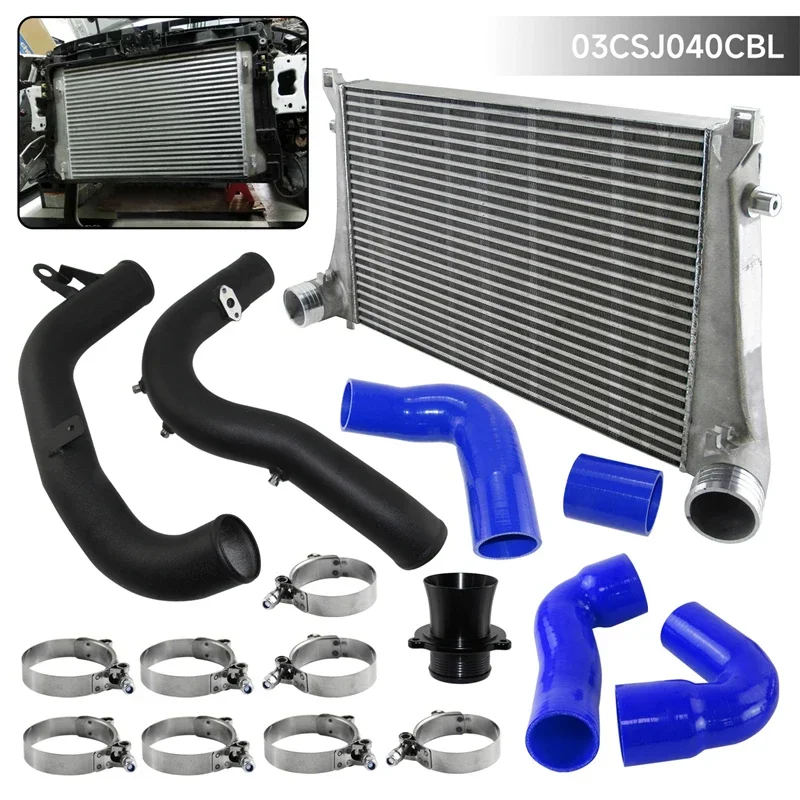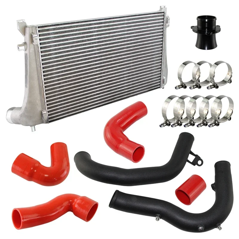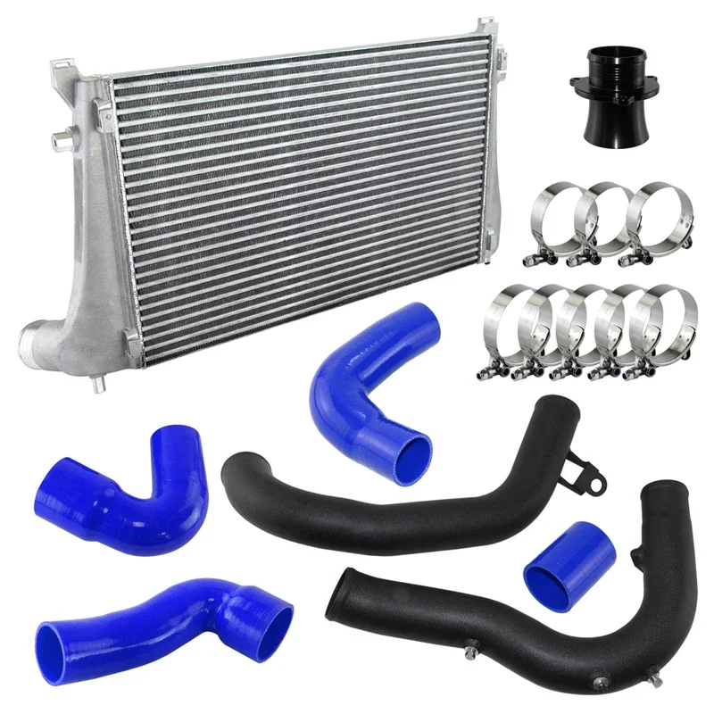 Black/Blue/Red Intercooler Kit w/Charge Pipe Kit For VW GTI MK7 Golf R Audi A3/S3 Skoda Seat 1.8T 2.0T TSI Aluminum