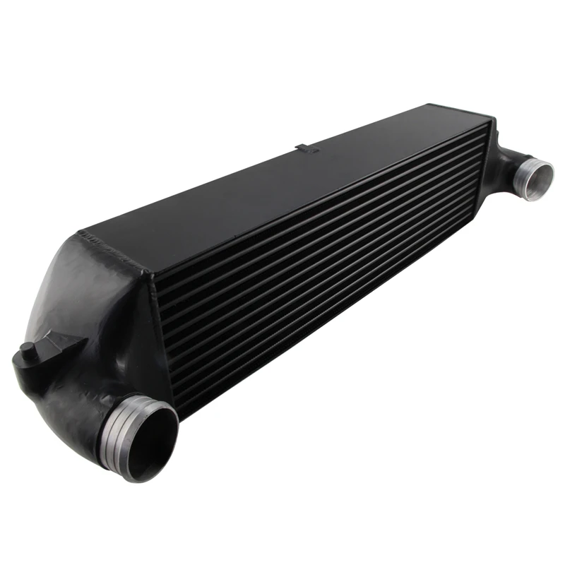 The aluminum cast endtanks were designed in CAD and optimized in CFD simulations (for an ideal internal airflow). An incorporated air baffle inside the intercooler inlet ensure a uniform filling of the intercooler. The result is a excellent cooling property with a minimal back pressure. The newly developed competition high-performance core is very light and provides the adjoining components (for example the watercooler) enough air flow by using a specially prepared air baffle. That`s why this kit is perfect for racing use. An optimal cooling effect of the charged air with a significant increase in performance!An anti-corrosion powder coating with perfect heat-conducting properties protects the intercooler from all environmental influences, so a lasting and optimal cooling effect can be guaranteed.