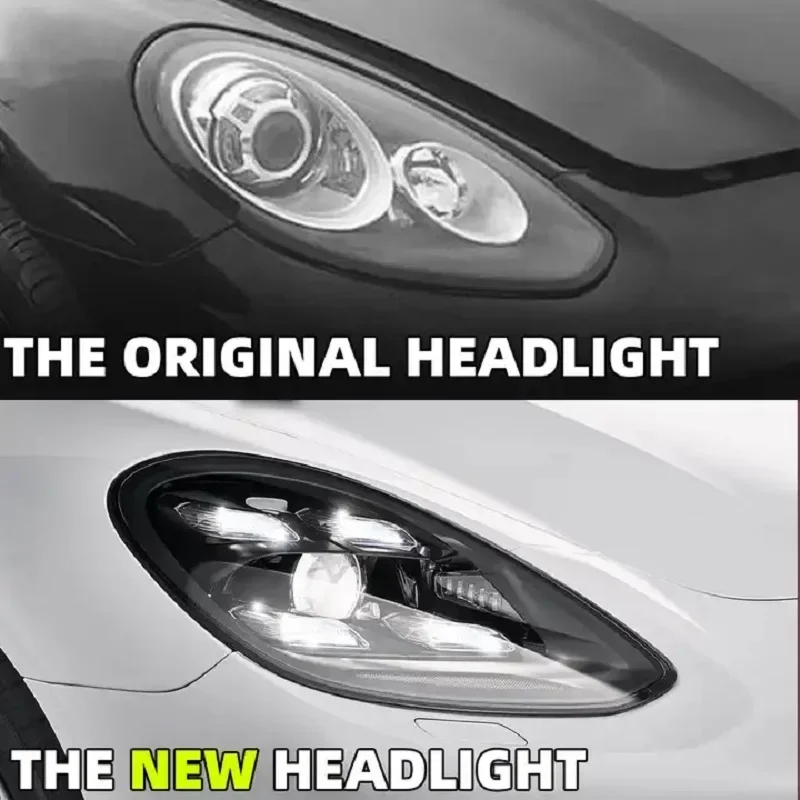 The 2014-2017 970.2 Xenon headlights can be upgraded directly, with the same exterior profile, no bumper replacement and no programming to match.