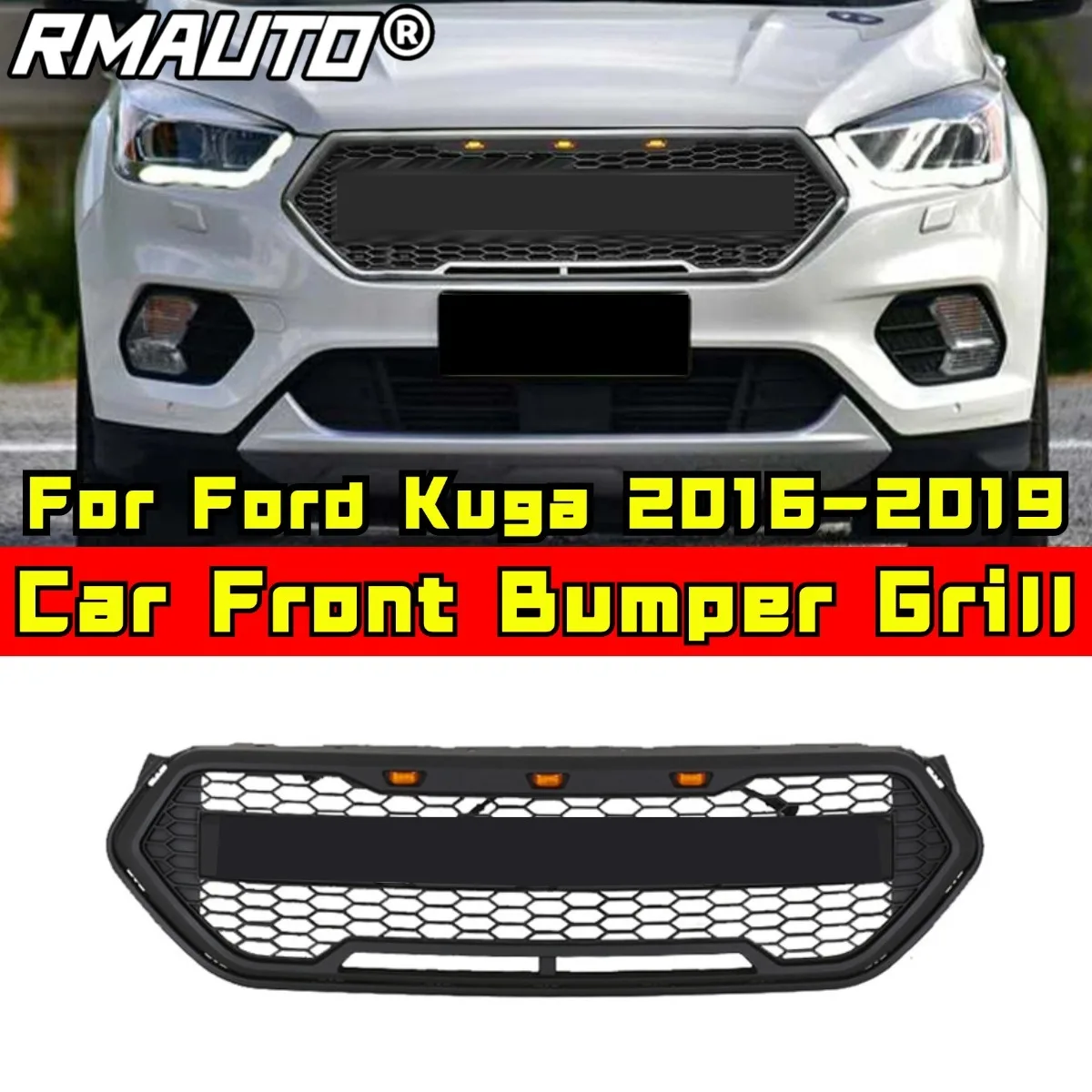 Car Front Bumper Grill Racing Grills Car Grille for Ford Kuga 2016-2019 Body Kit Car Accessories