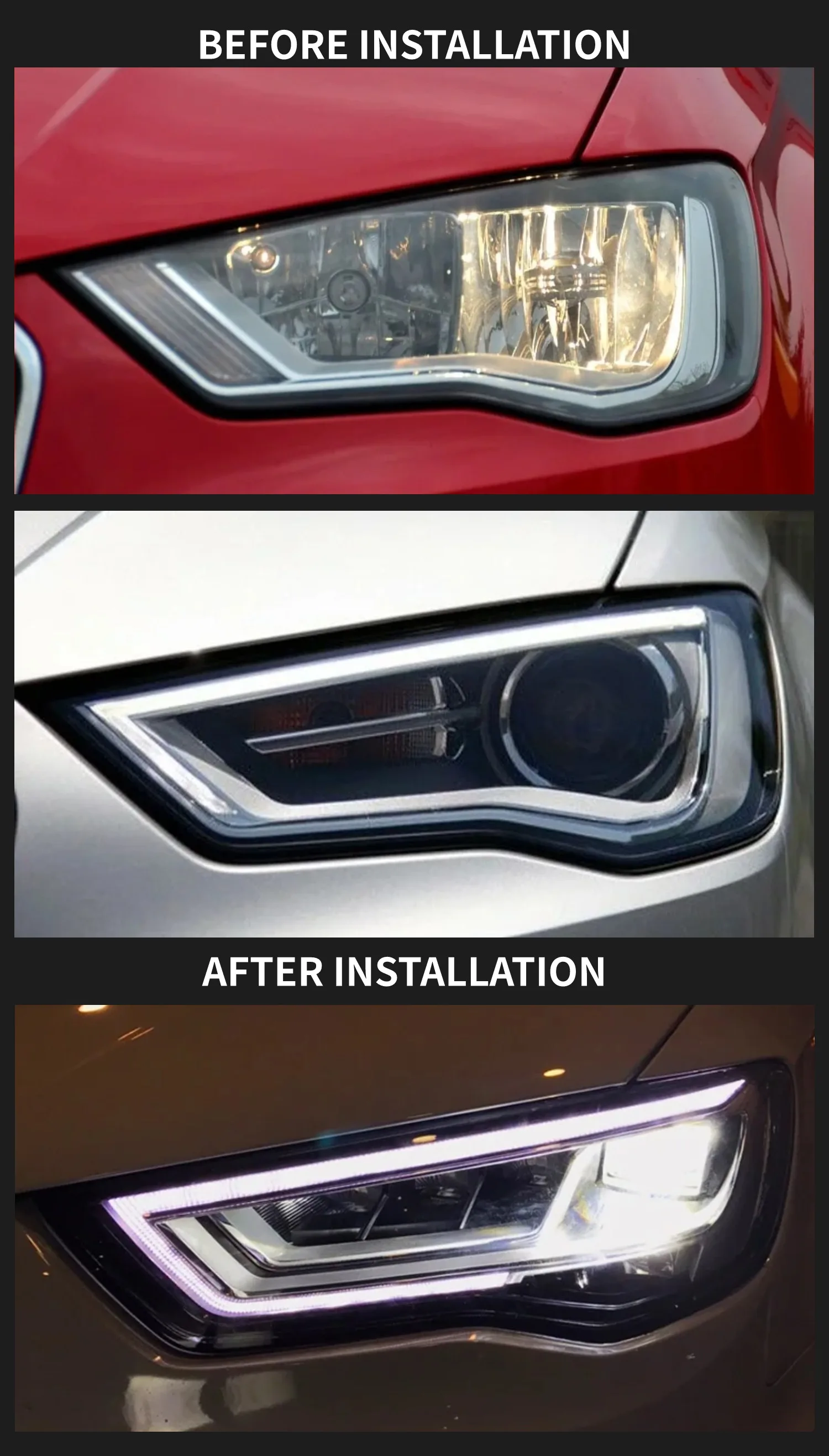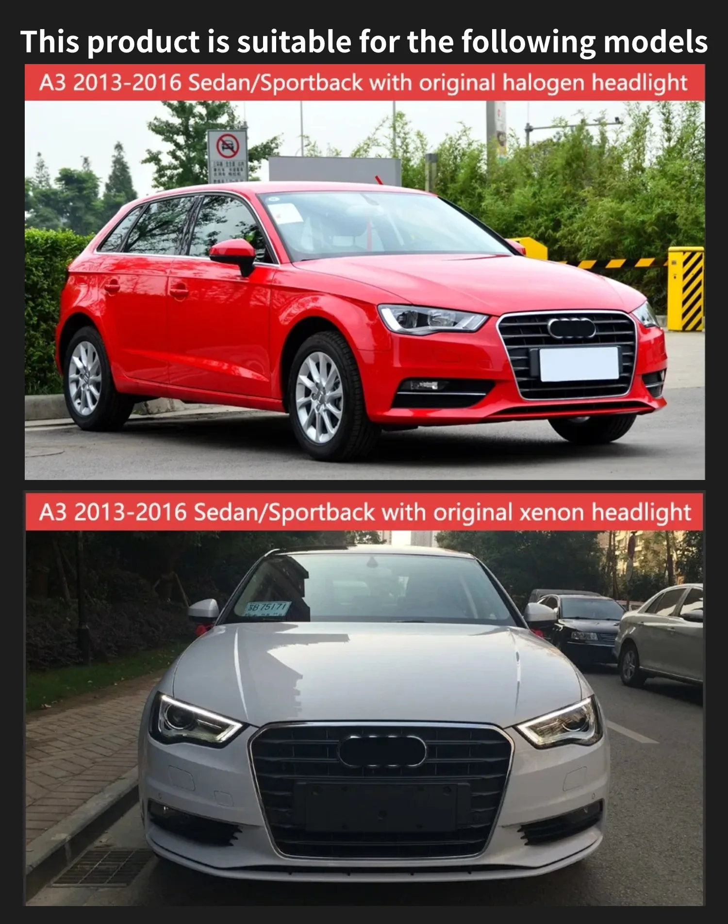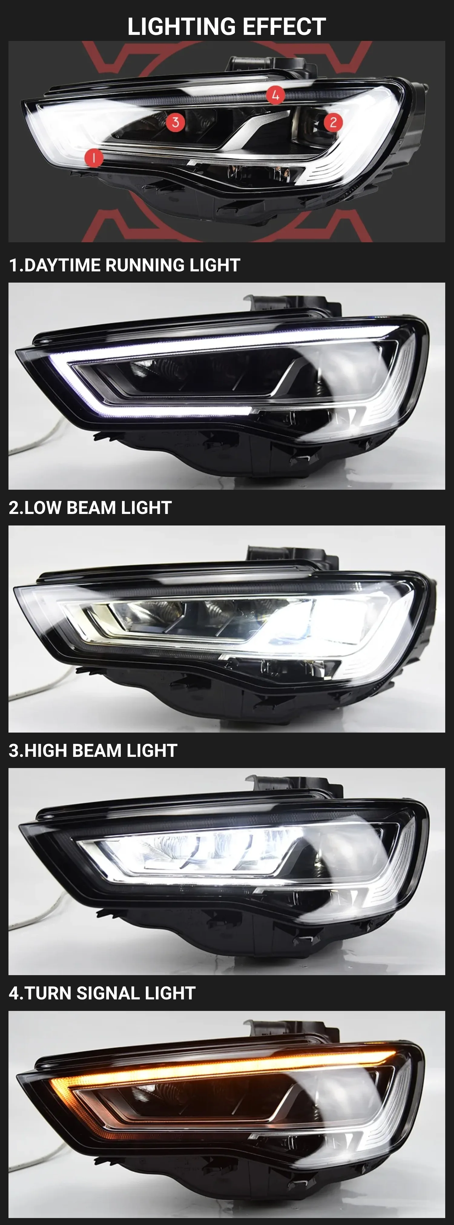 Car LED Headlight Light Assemblies For Audi A3 8V S3 Sedan Sportback 2013-2016 Auto Fog DRL Brake Turn Signal Lamp Plug and Play