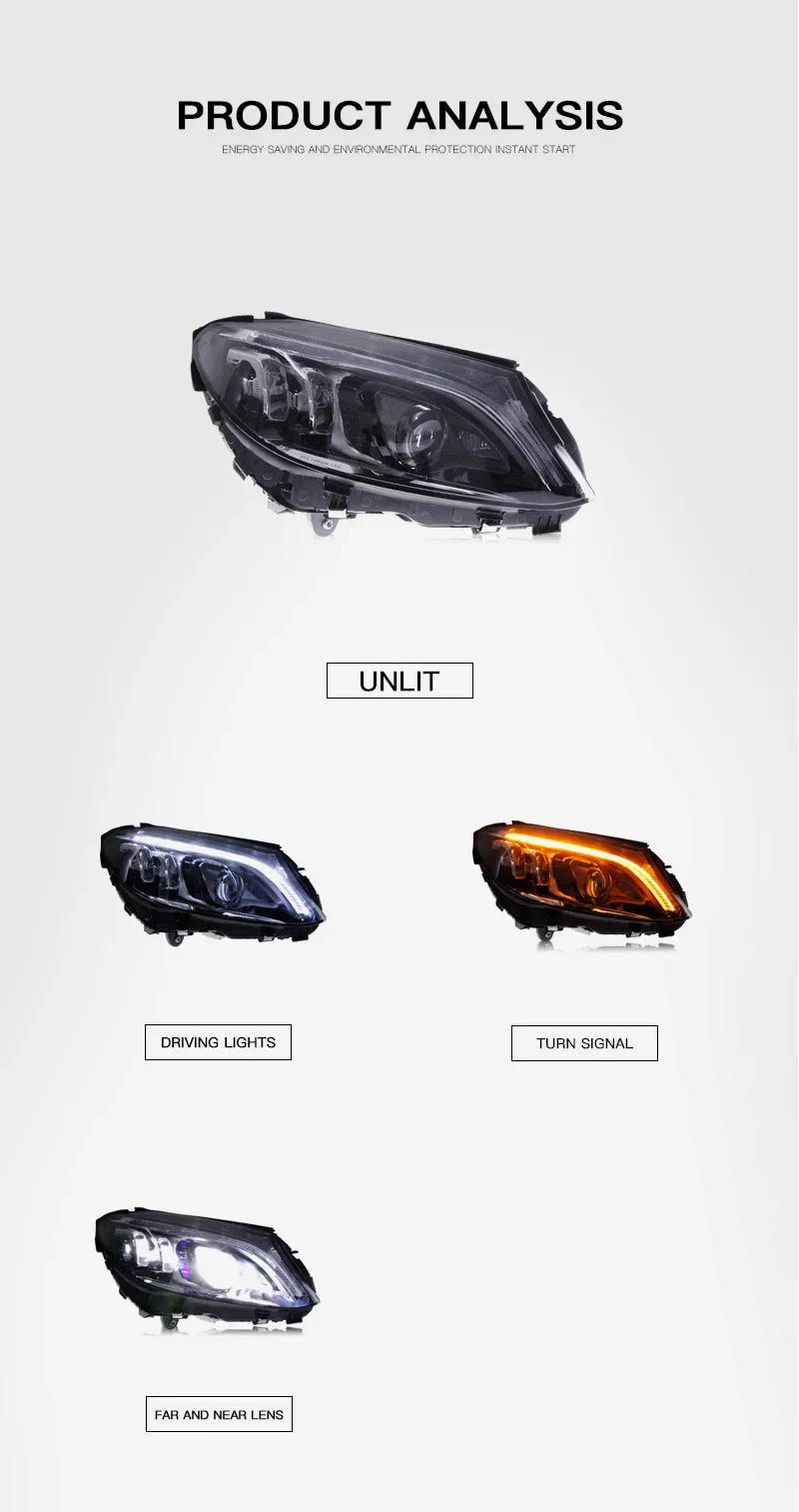Car LED Headlight Light Assemblies For Benz C-Class W205 2014-2021 Auto Fog DRL Brake Turn Signal Lamp Plug and Play