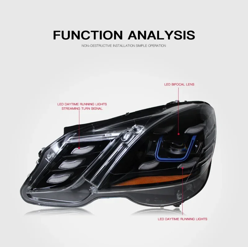 Car LED Headlight Light Assemblies For Benz E-Class W212 2010-2013 Auto Fog DRL Brake Turn Signal Lamp Plug and Play