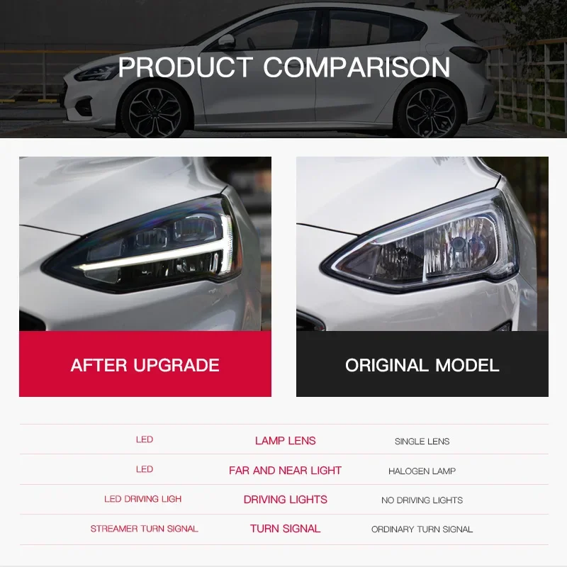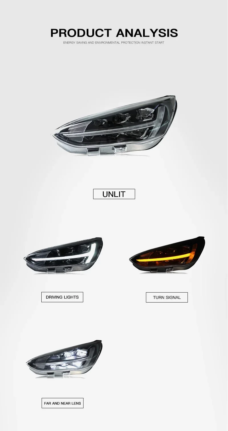 Car LED Headlight Light Assemblies For Ford Focus 2019-up Auto Fog DRL Brake Turn Signal Lamp Plug and Play