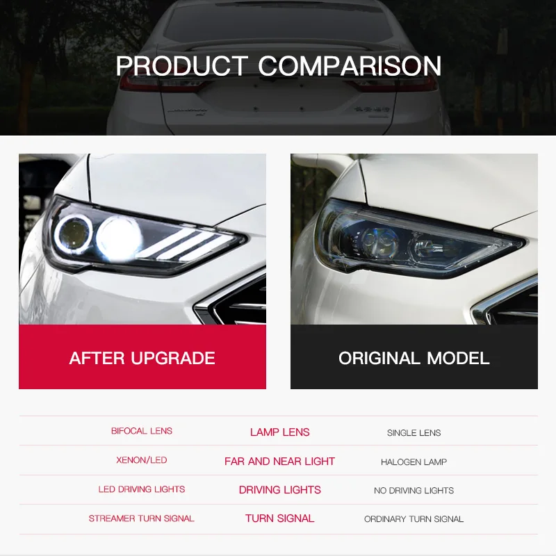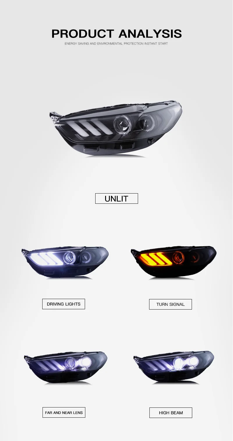 Car LED Headlight Light Assemblies For Ford Mondeo 2017-2019 Auto Fog DRL Brake Turn Signal Lamp Plug and Play