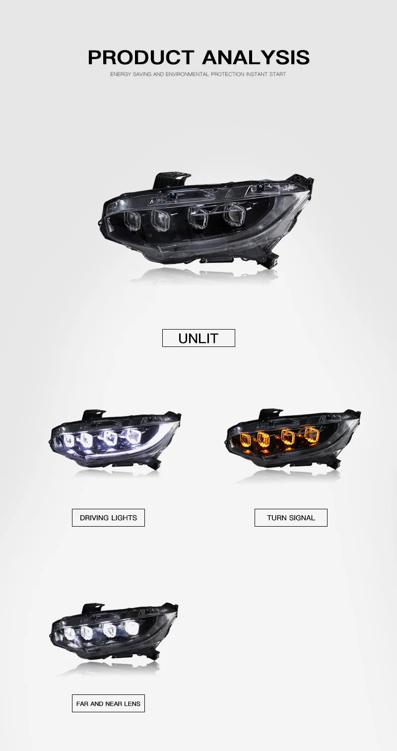 Car LED Headlight Light Assemblies For HONDA Civic 2016-2021 Auto Fog DRL Brake Turn Signal Lamp Plug and Play