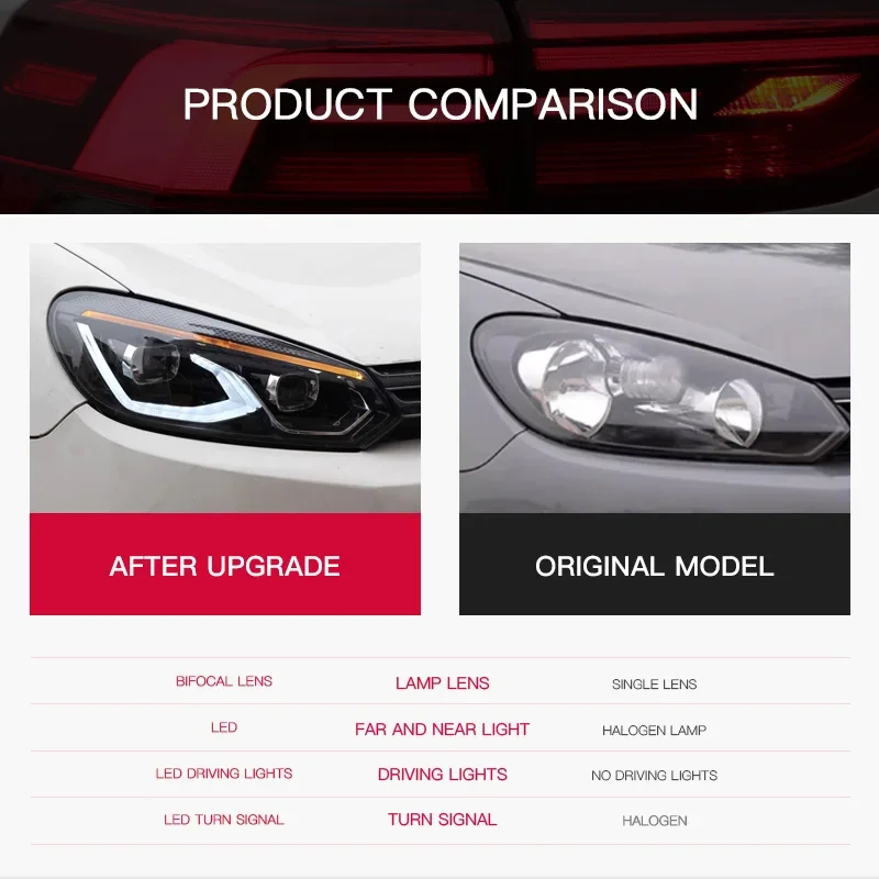 Car LED Headlight Light Assemblies For VW Golf 6 2009-2012 Auto Fog DRL Brake Turn Signal Lamp Plug And Play