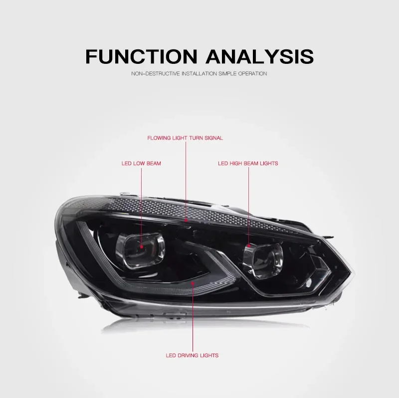 Car LED Headlight Light Assemblies For VW Golf 6 2009-2012 Auto Fog DRL Brake Turn Signal Lamp Plug And Play