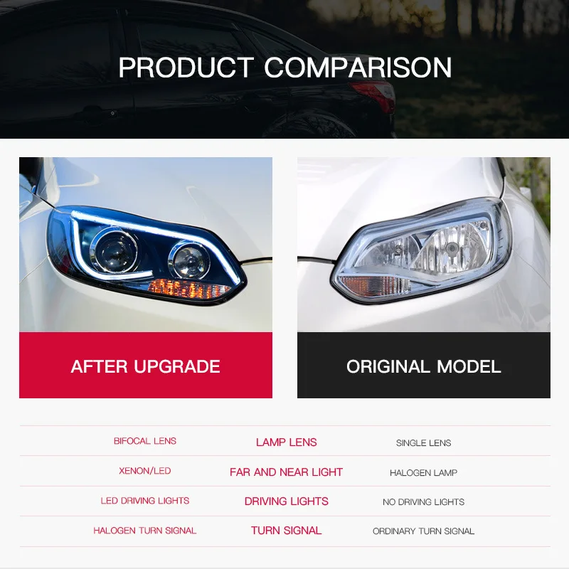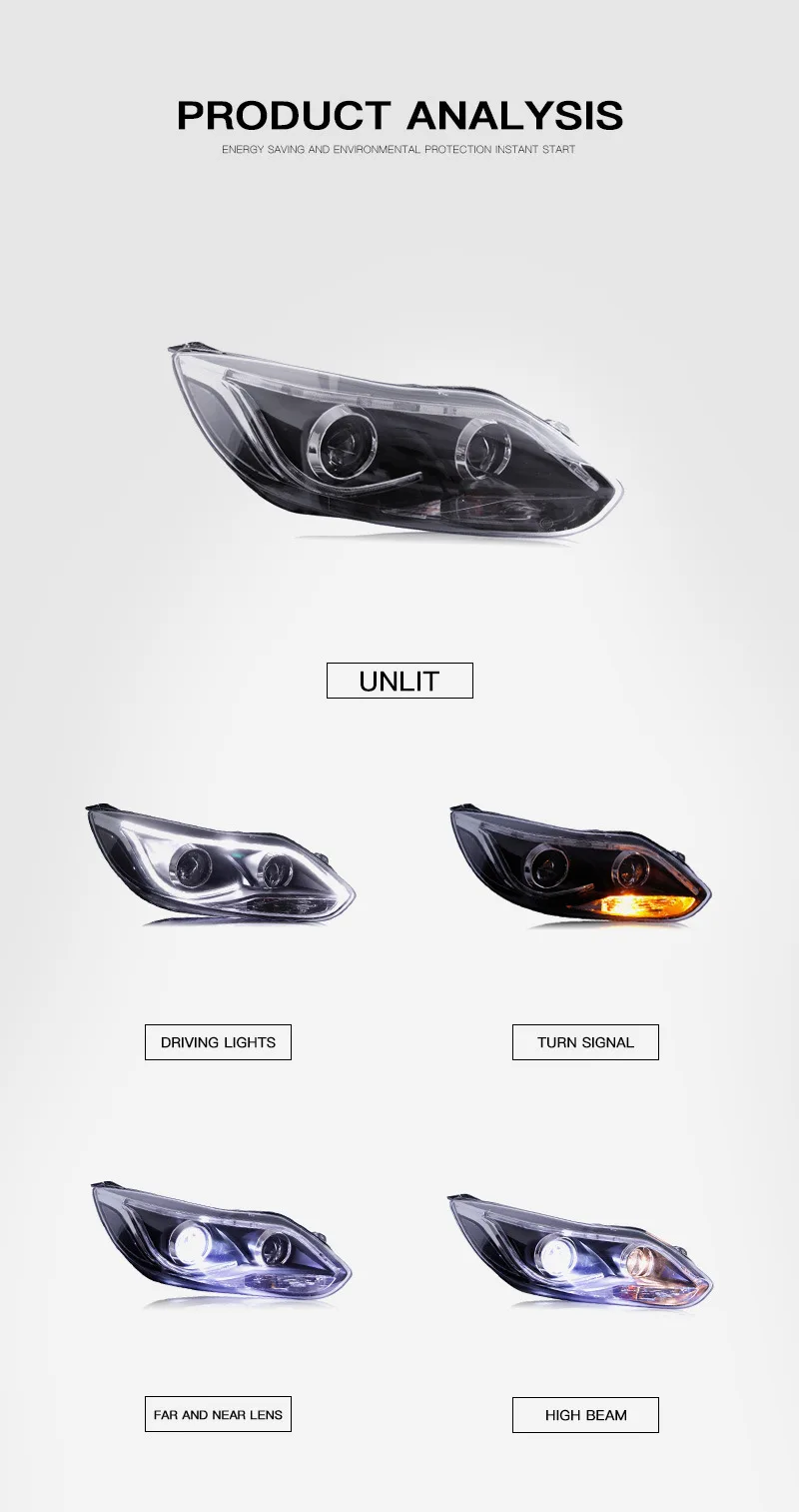 Car LED Headlight Plug and Play Light Assemblies For Ford Focus 2012 2013 2014 Auto Fog DRL Brake Turn Signal Lamp