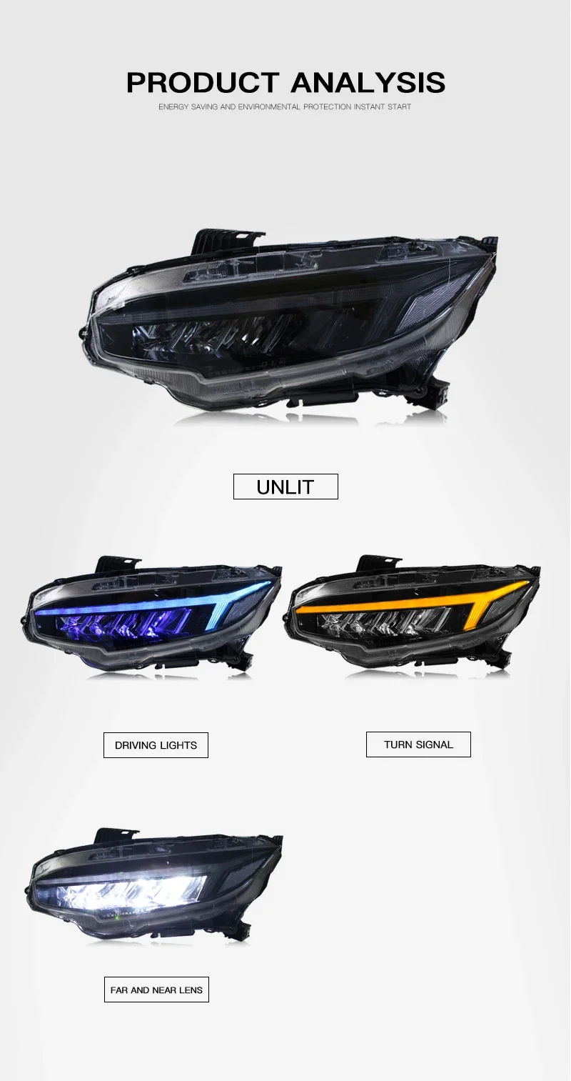 Car LED RGB Headlight Light Assemblies For HONDA Civic 2016-2021 Auto Fog DRL Brake Turn Signal Lamp Plug And Play