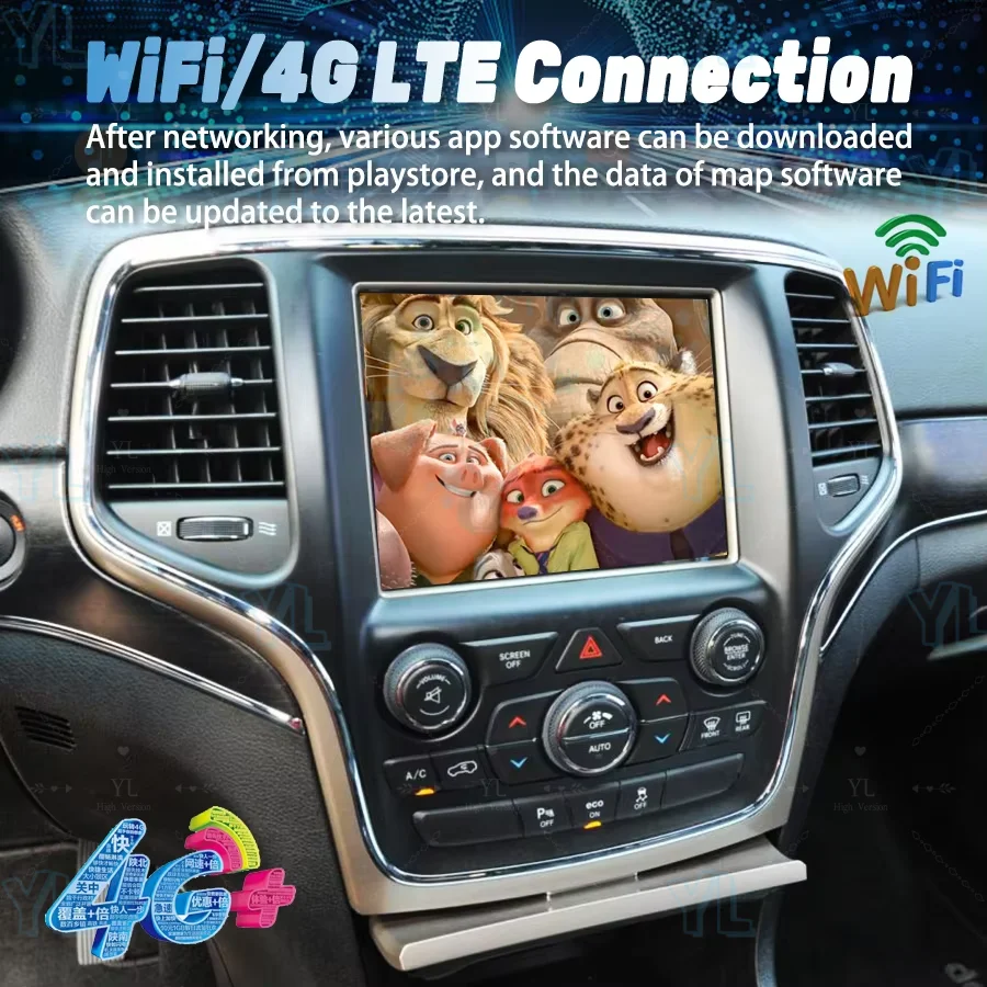 Car Radio Carplay Auto GPS 8.4″ Android 14 Touch Screen Auto Radio For Jeep Grand Cherokee Compass Dodge RAM 2014-2017 Head Unit