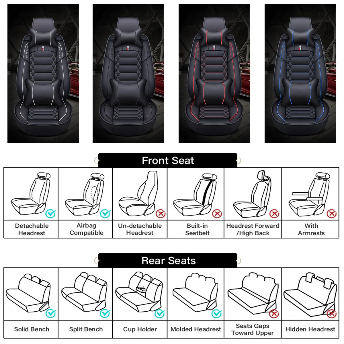 Car Seat Covers Full Set, Car Seat Protectors, Fit for FIAT Panda, 500L, 500X, Tipo, Bravo, Linea, Stilo, Lancia Ypsilon