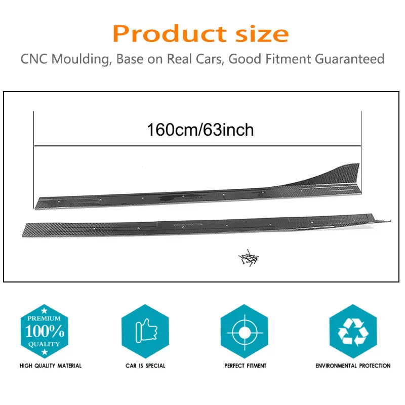 Package includes: 2PCS/Set x Carbon Fiber Side Skirts Extensions (This Item is a part of the kit, any other needs pls feel free to contact us)