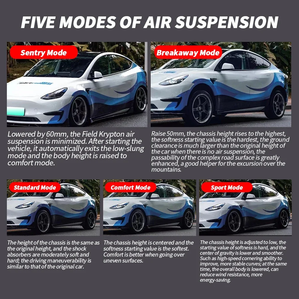 Car Tuning Air Suspension for Tesla 3 for Tesla Y Multi-mode Enhanced Lower the height of the vehicle Car alloys Accessories