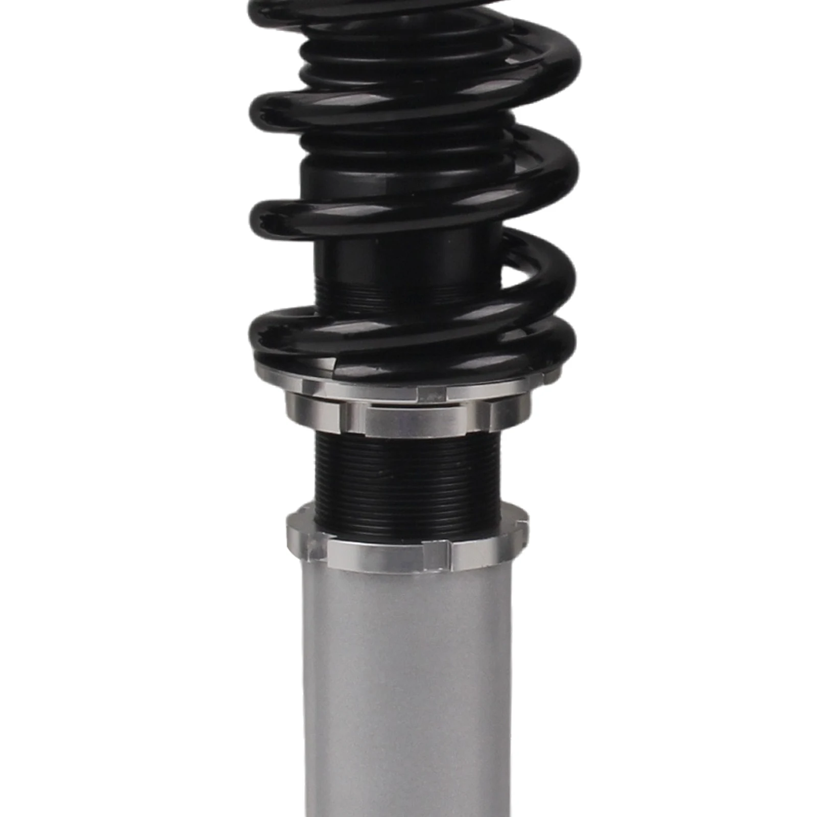2.24 levels of adjustable damper — This allows you the ability to perfectly dial in your coil-overs system. For nice comfortable driving, set damping to full soft. For more spirited driving, set it to 16 clicks. For occasional track days, set it to full stiff.