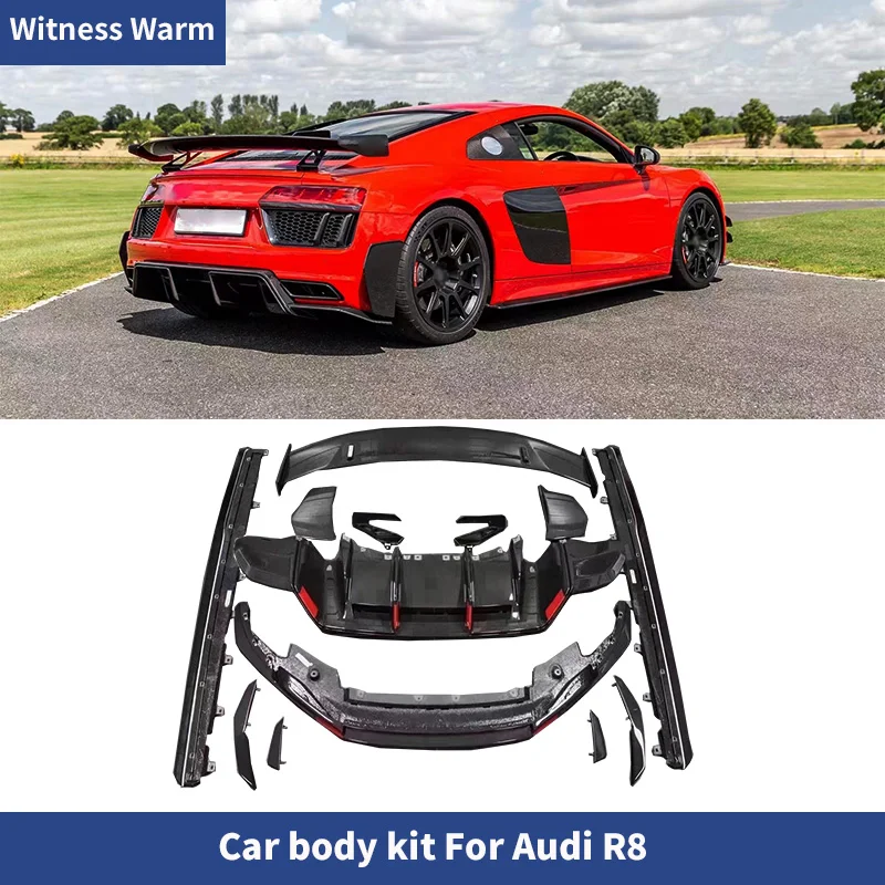 Dry Carbon Fiber Front Lip Rear Bumper Diffuser Rear Spoiler Side Skirts for Audi R8 Car Body Kit 16-18