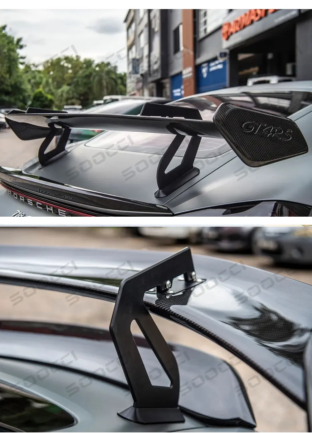 ✔️Sport-Aerodynamic Edge Dry Carbon Fiber GT4RS Style Rear Wing styling pairs bold aesthetics with engineered airflow contours, refining both visual impact and high-speed stability.
