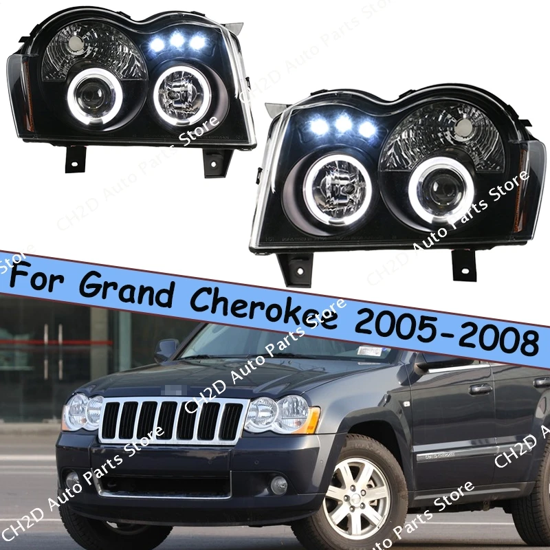 For Grand Cherokee 2005-2008 LED Headlight Cherokee Turn Signal High Beam Angel Eye Projector Lens Headlights Jeep Auto Parts