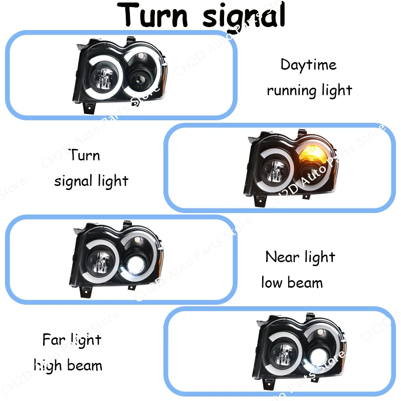 For Grand Cherokee 2005-2008 LED Headlight Grand Cherokee Turn Signal High Beam Angel Eye Projector Headlights Jeep Auto Parts