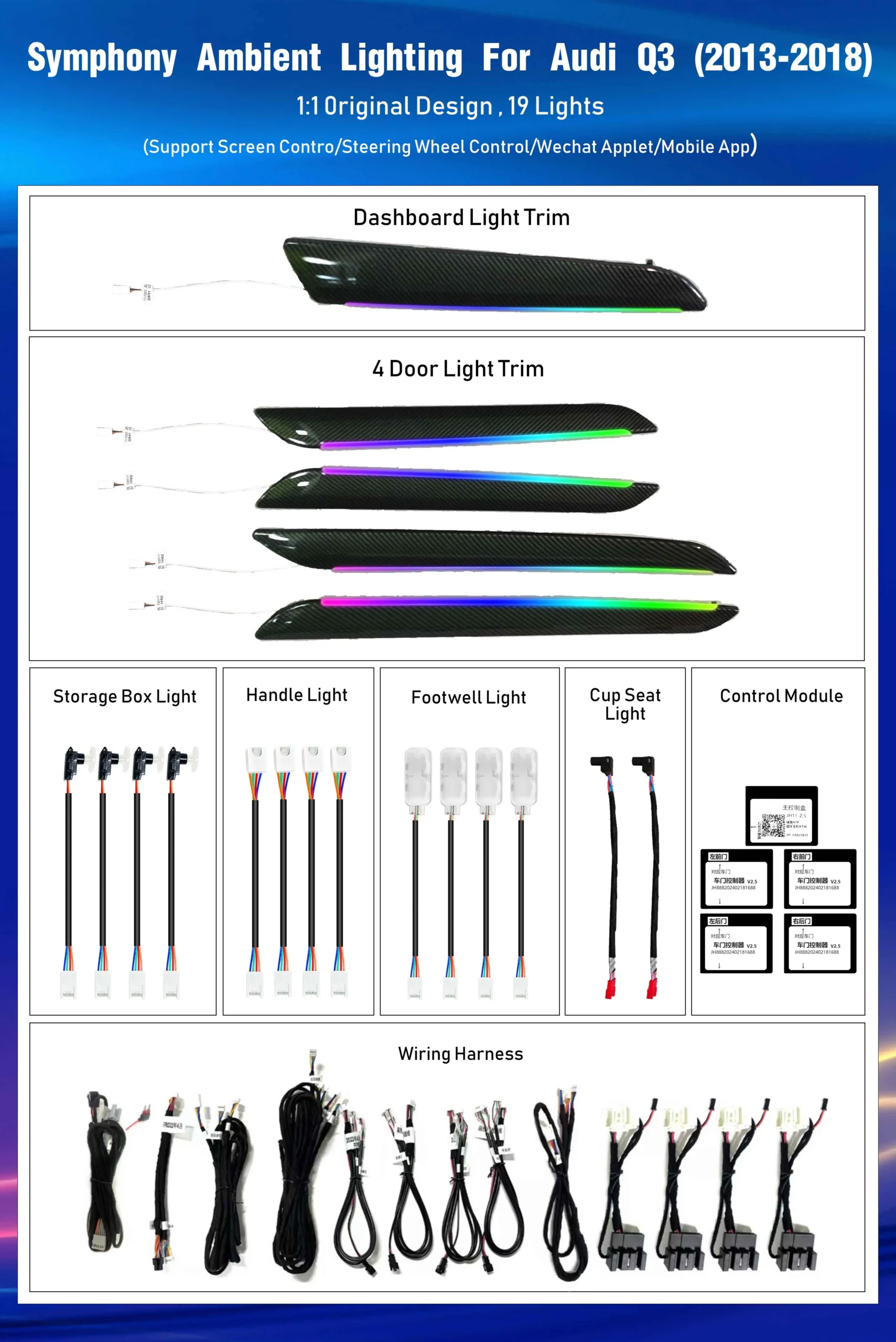 iCarsin Upgrade 256 Colors Symphony Led Car Interior Ambient Light Decoration For Audi Q3 2013-2018 Atmosphere Strip Accessories