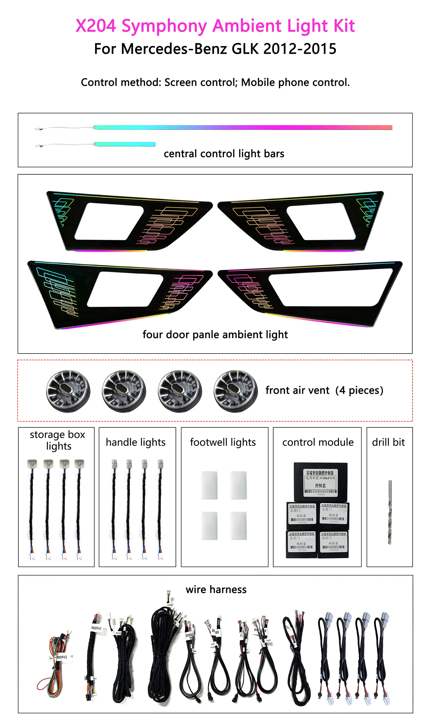For X204 Symphony Ambient Light Kit For Mercedes-Benz GLK 2012-2015 Atmosphere Light Car LED Air Vent Interior Ambient Lamp
