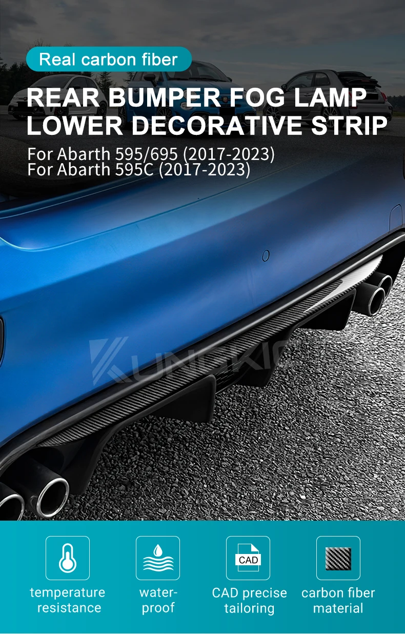 Hard Dry Carbon Fiber For Abarth 595 695 595C 2017 2018 2019 2020 2021 2022 2023 Car Rear Bumper Decoration Sticker Accessories