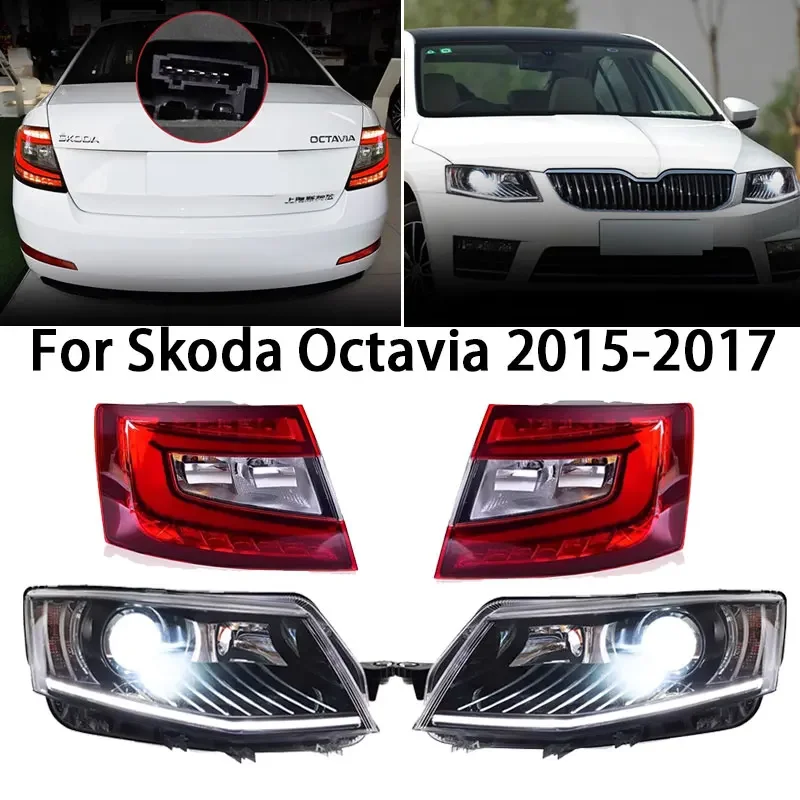 Head Lamp with taillights for Skoda Octavia LED Headlight 2015-2017 Headlights Octavia DRL Turn Signal High Beam Angel Eye Projector Lens