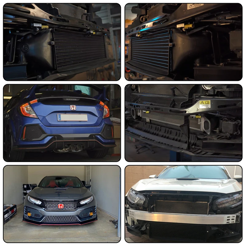 Competition Intercooler For Honda Civic Type R FK8 2.0L Engine K20C1 Turbo 2017+Application:For Honda Civic Type R FK8 2.0L Engine K20C1 Turbo 2017+Description:The intercooler has got a new competition core (Tube Fin) was developed especially for the requirements of the Honda Civic Type R FK8. This high-performance core offers an 91 % larger frontal surface and 140 % more core volume compared to the stock intercooler.