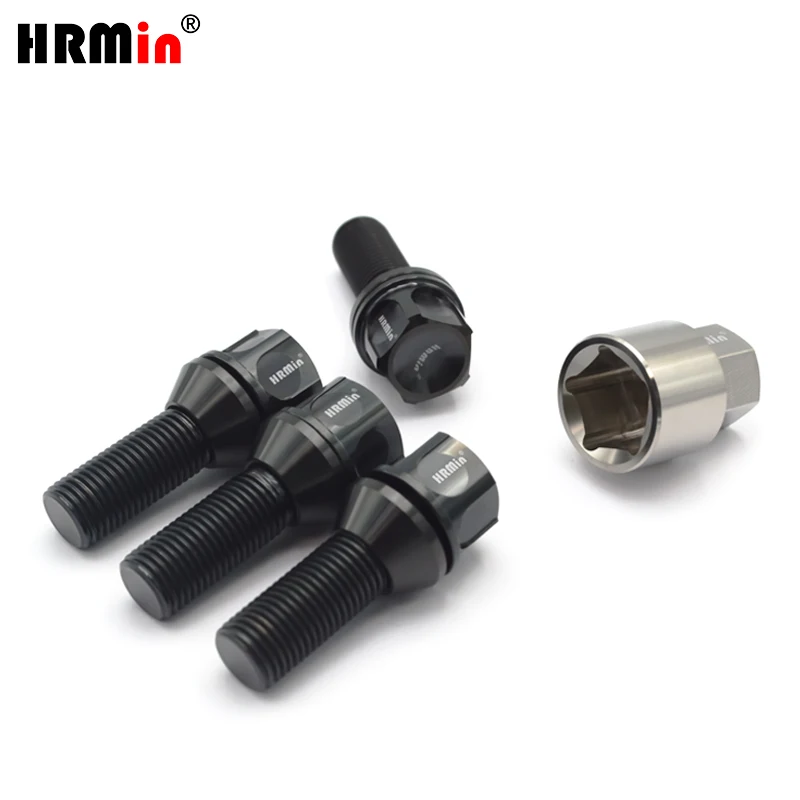 HRMin Gr.5 titanium 19hex Cone seat floating washer anti-theft titanium bolt wheel hub bolt M14*1.5*32mm for Volvo racing car