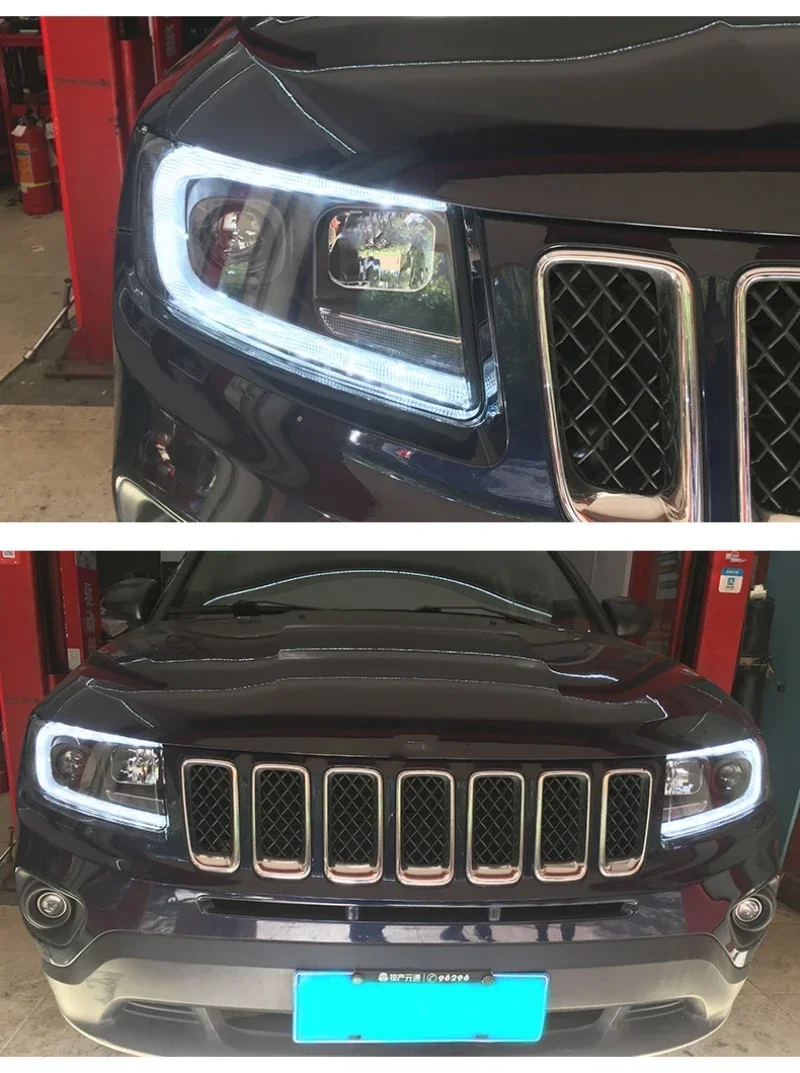LED Headlight Assembly for Jeep Compass 2011-15 Modified Headlamp Turn Signal Daytime Running Light