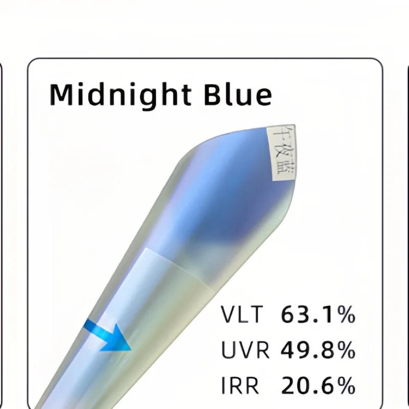 LLumar Midnight blue PET Colorful Film Window Tint: 63.1% Light Transmission, 20.6% Heat Blocking, 49.8% UV Protection