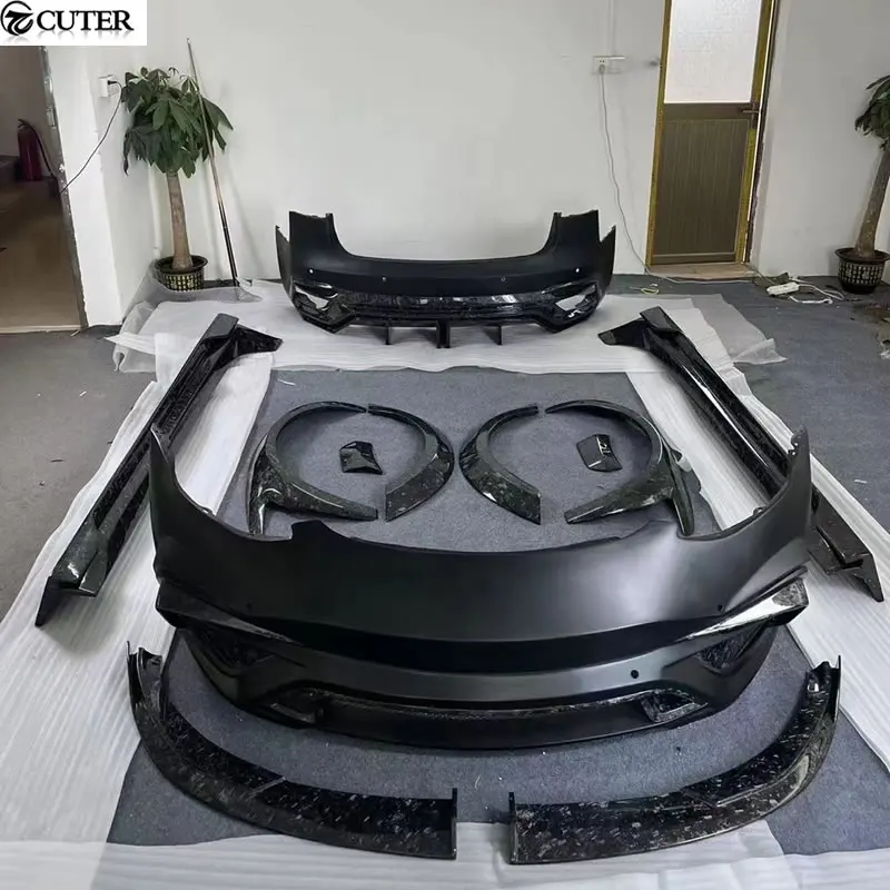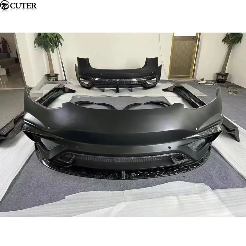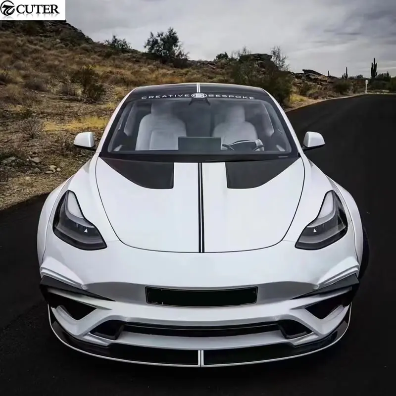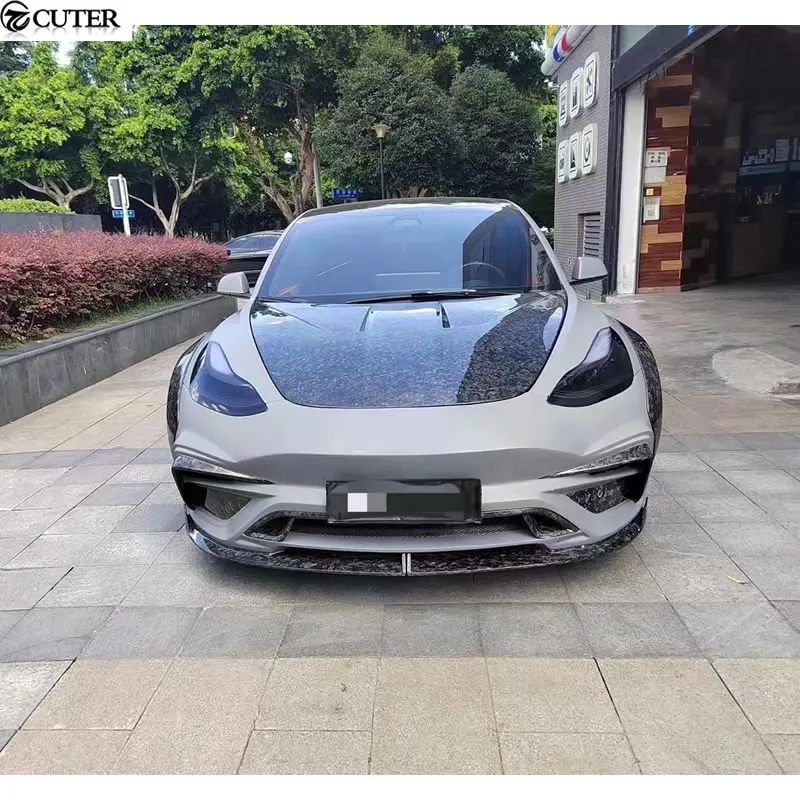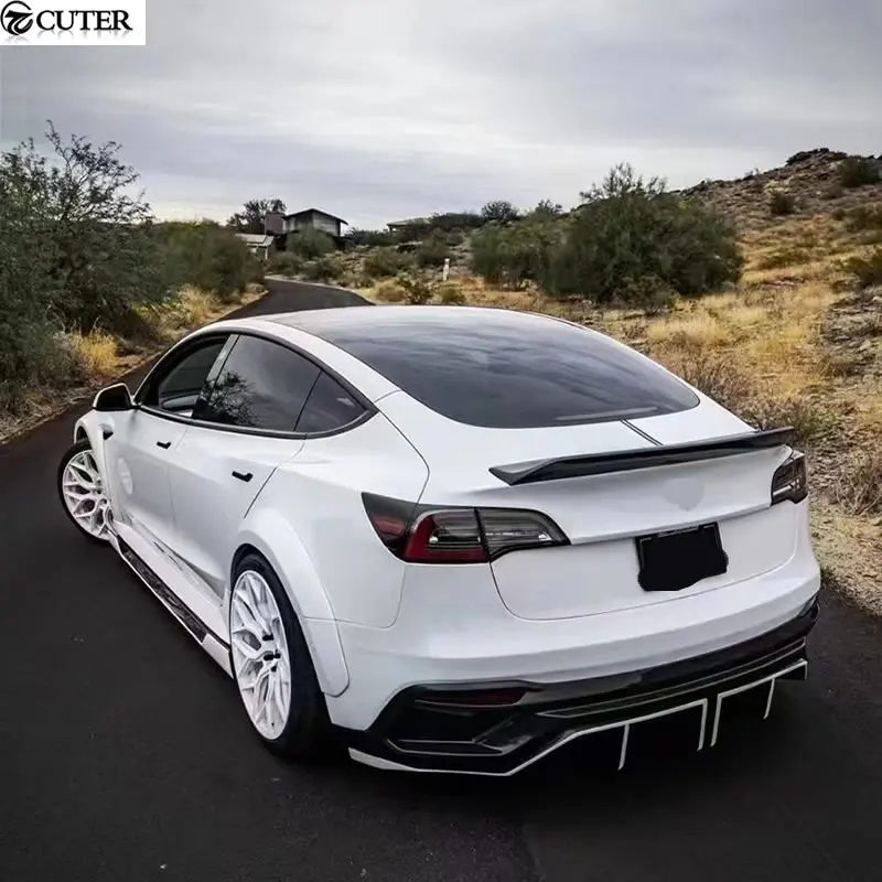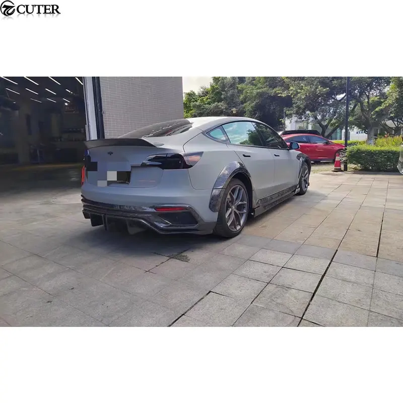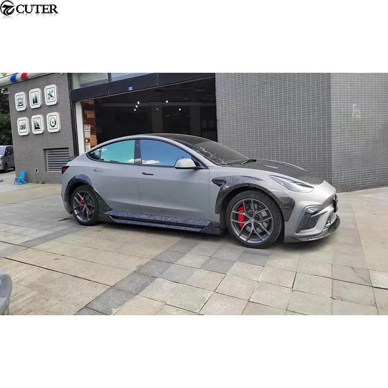 Model 3 Carbon FRP Front Bumper Rear Bumper Side Skirts Rear Spoiler Engine Hood for Tesla Model 3 I Style Wide Car Body Kit