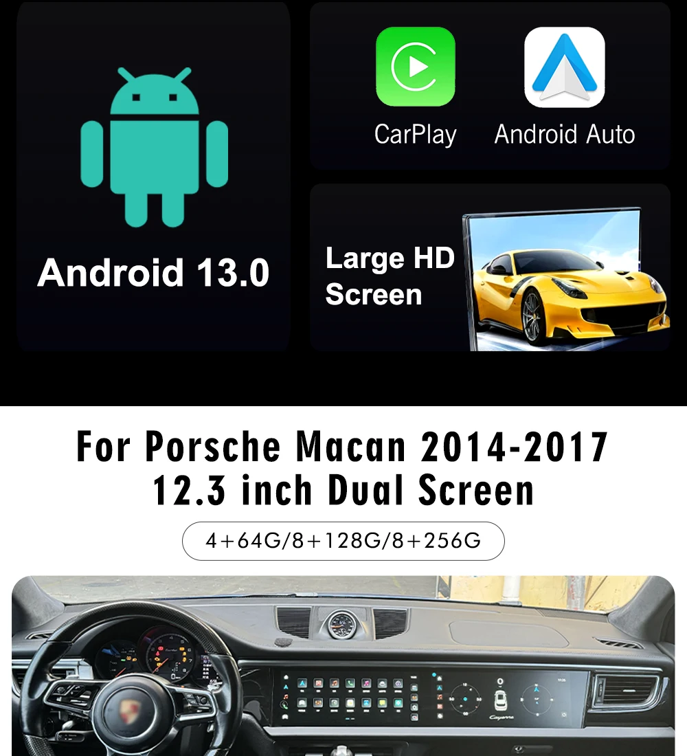 Multimedia Android 13 Player For Porsche Macan 2014~2017 Upgrade 2024 GPS Navi Car Radio Stereo Copilot Entertainment Head Unit