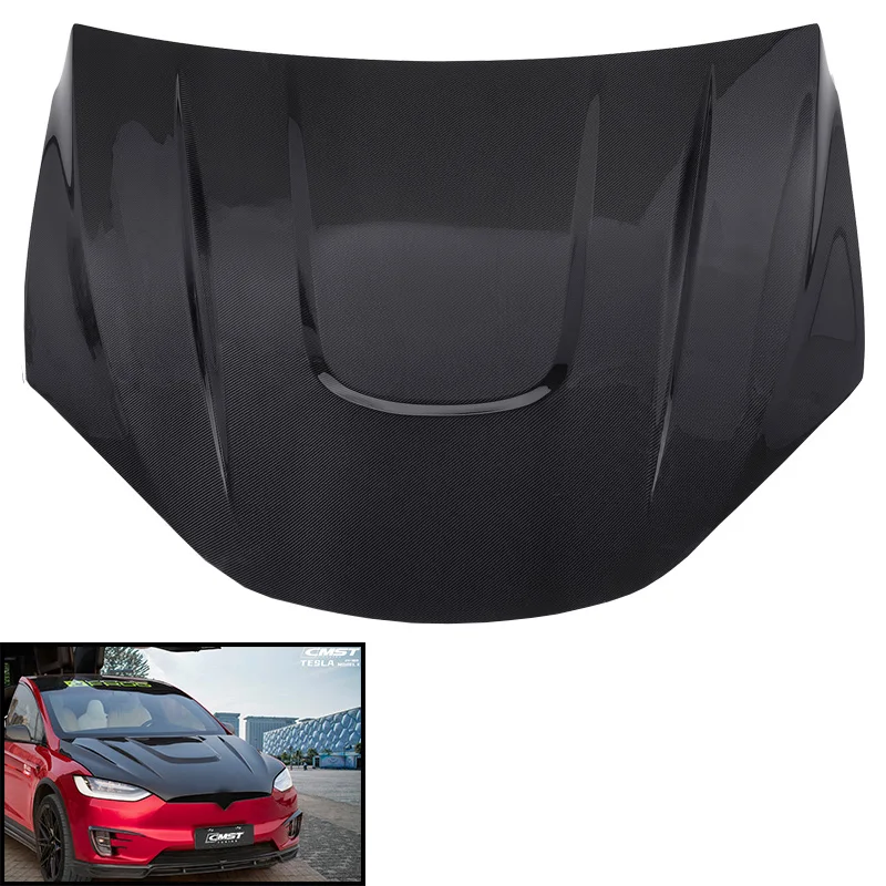 Elevate the performance and aesthetics of your Tesla Model X (2015-2022) with this manufacturer-direct CMST Carbon Fiber Engine Hood Cover. Meticulously crafted from premium-grade carbon fiber, this hood offers a significant reduction in weight for improved efficiency and dynamic handling. Its aggressive design not only enhances your vehicle’s sporty profile but also promotes superior heat dissipation. Designed for a seamless OEM fit, this cover combines CMST’s racing heritage with sleek functionality, making it the ultimate upgrade for Model X owners seeking a lightweight, high-performance, and head-turning exterior enhancement.