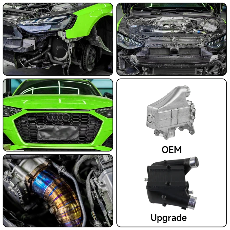 For Audi RS5 F5 2018-2023Description:Enhanced Cooling Efficiency: This modified and enlarged intercooler upgrade kit is designed to increase the cooling efficiency of your vehicle, ensuring optimal engine performance and longevity.