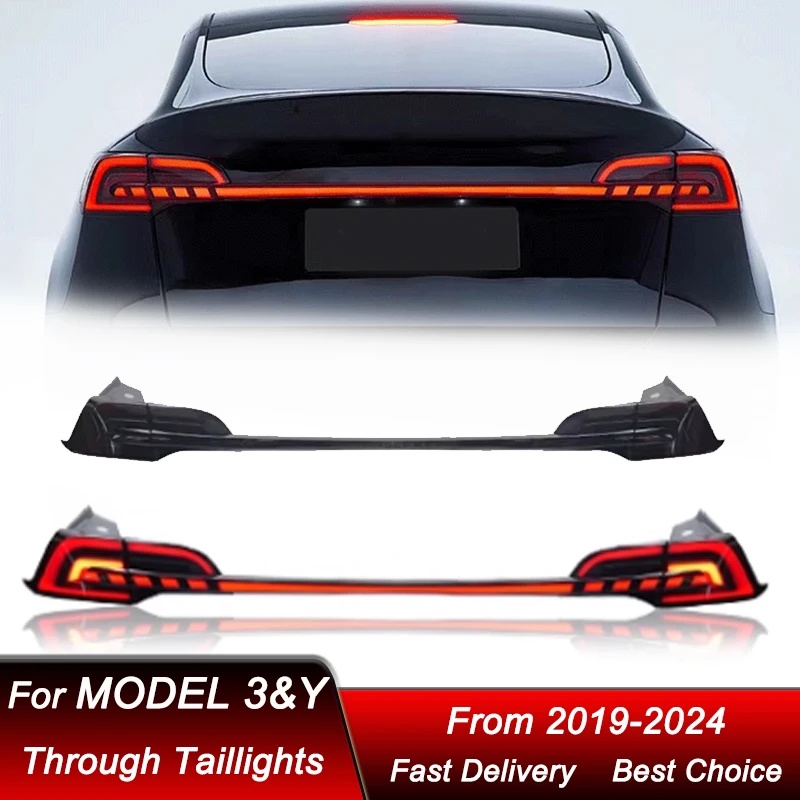 Pop Car Through Tail Lights For Tesla Model 3 Model Y 2019-2024 Full LED Tail Lamp Dynamic Turn Signal Light Tail Lamp Assembly