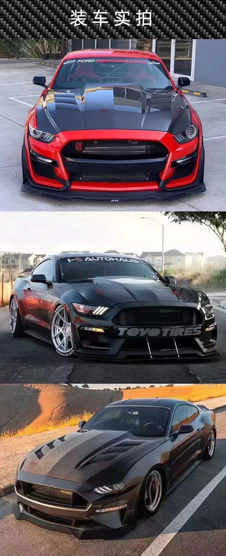 Suitable For 15-17 Ford Mustang Carbon Fiber Cover AC Hood Mustang Modified Perforated Headcover Surround