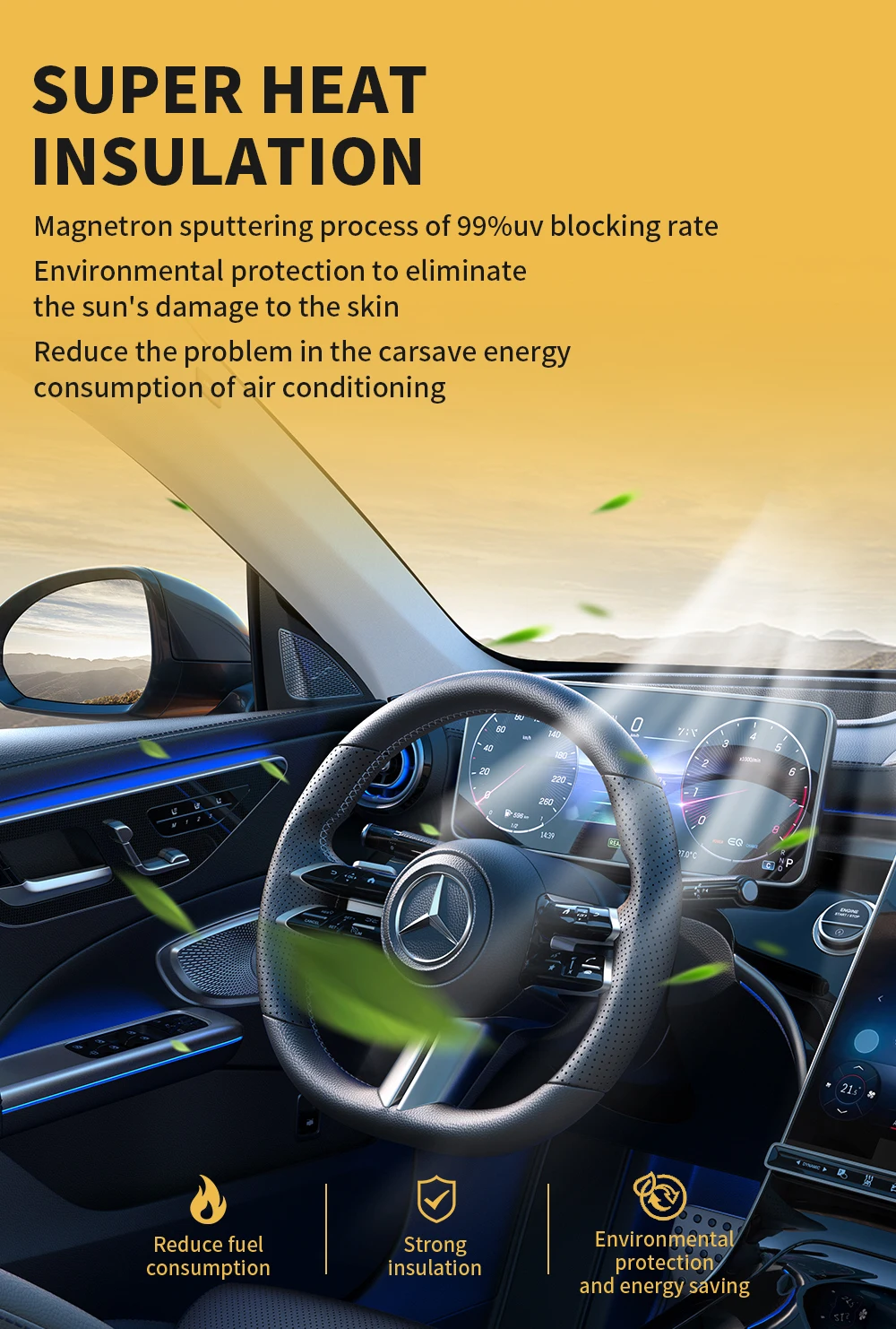 Our window film features advanced heat rejection technology, capable of blocking a remarkable 70% of solar heat. This means you can say goodbye to sweltering car interiors during hot summers and reduce your reliance on air conditioning, leading to significant fuel savings over time. Not only does it keep you cool, but it also provides outstanding UV protection, filtering out over 99% of harmful ultraviolet rays. This safeguards your skin from premature aging and potential skin cancer risks, as well as preserves the interior of your car from fading and cracking, maintaining its resale value.