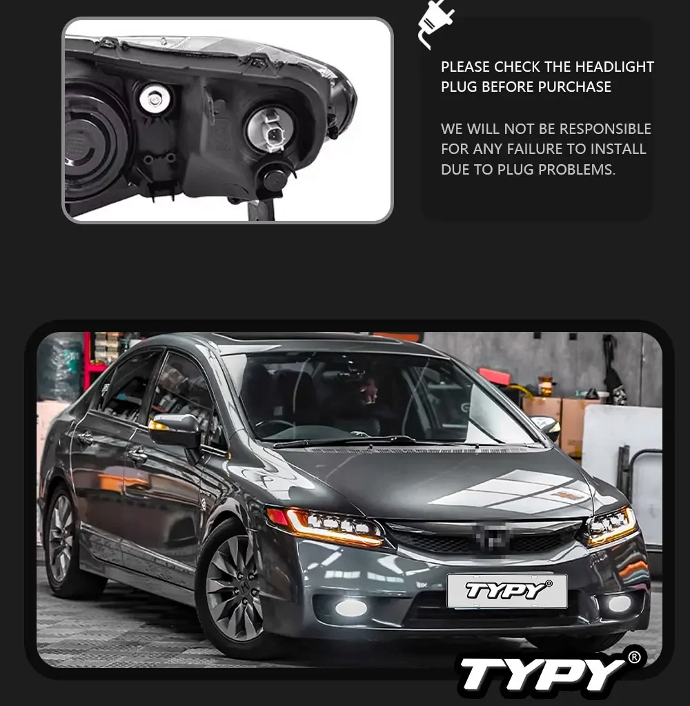 TYPY Car Lights For Honda Civic 8th Headlight 2006-2011 LED Projetor head Lamp Daytime Running Light Automotive Accessories
