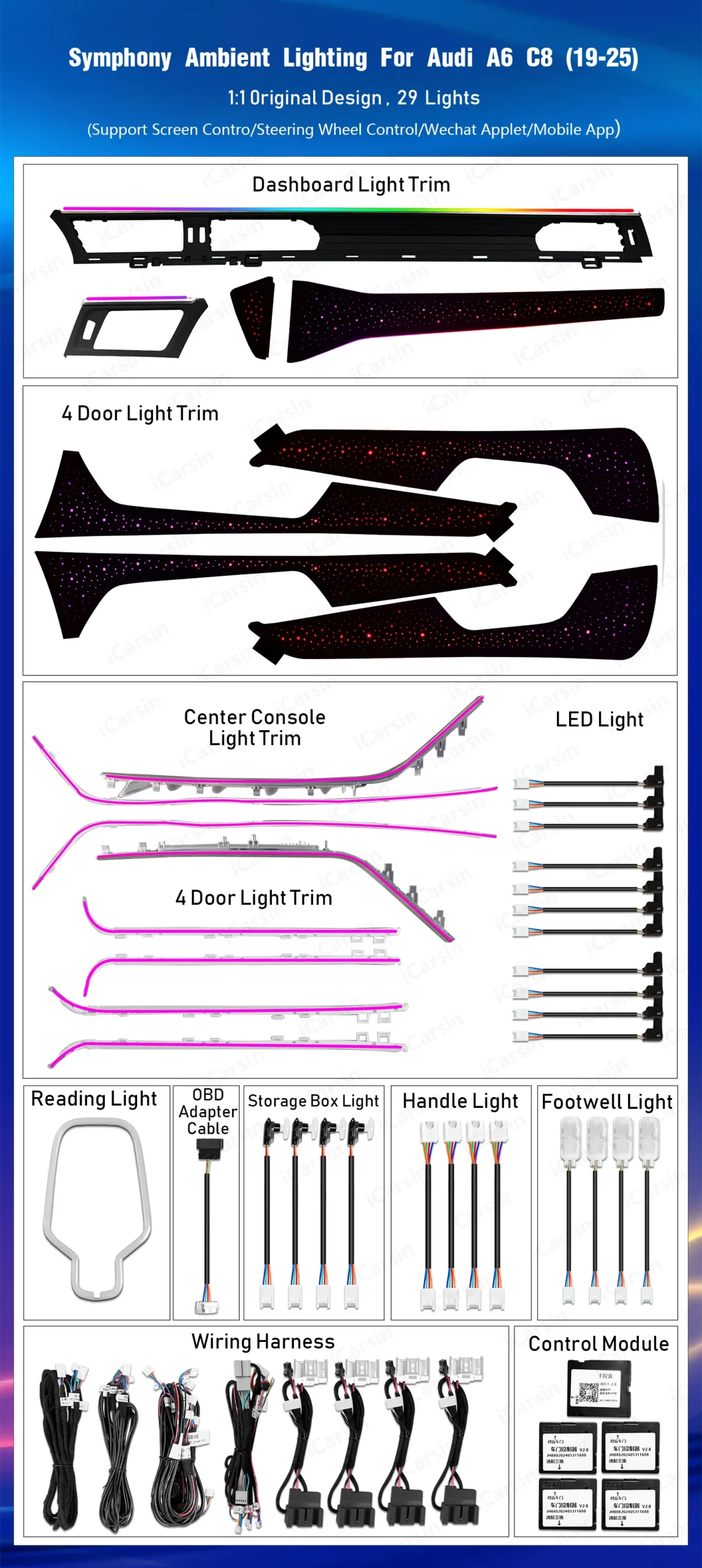 6. The ambient light kit with Original vehicle agreement, Support Car Screen Control